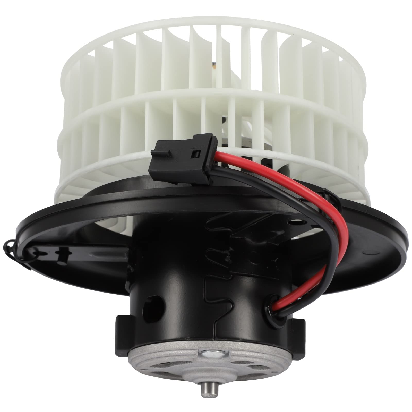 [Specifications]: 1x AC Blower Motor(w/Fan)- ①Placement on Vehicle: Front;②Style: Flanged;③Vented: Vented;④Material: Plastic;⑤Flanged End: Yes;⑥Number of Terminals: 2;⑦Terminals Type: 2 Lead Wires w/ Connector;⑧Working Voltage: 12V;⑨Connector Gender: Female;⑩Cage Wheel Included: w/ Wheel