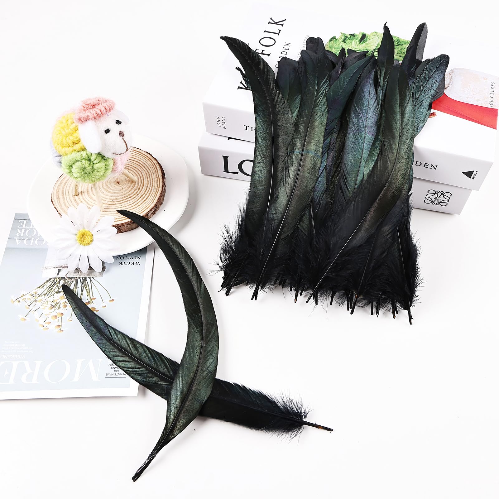 Suitable Size: 10-12 inch long rooster tail feathers, suitable length and shape make feathers easy for you to decorate your crafts. These are real rooster tail feathers, each one is unique and the shape may vary.