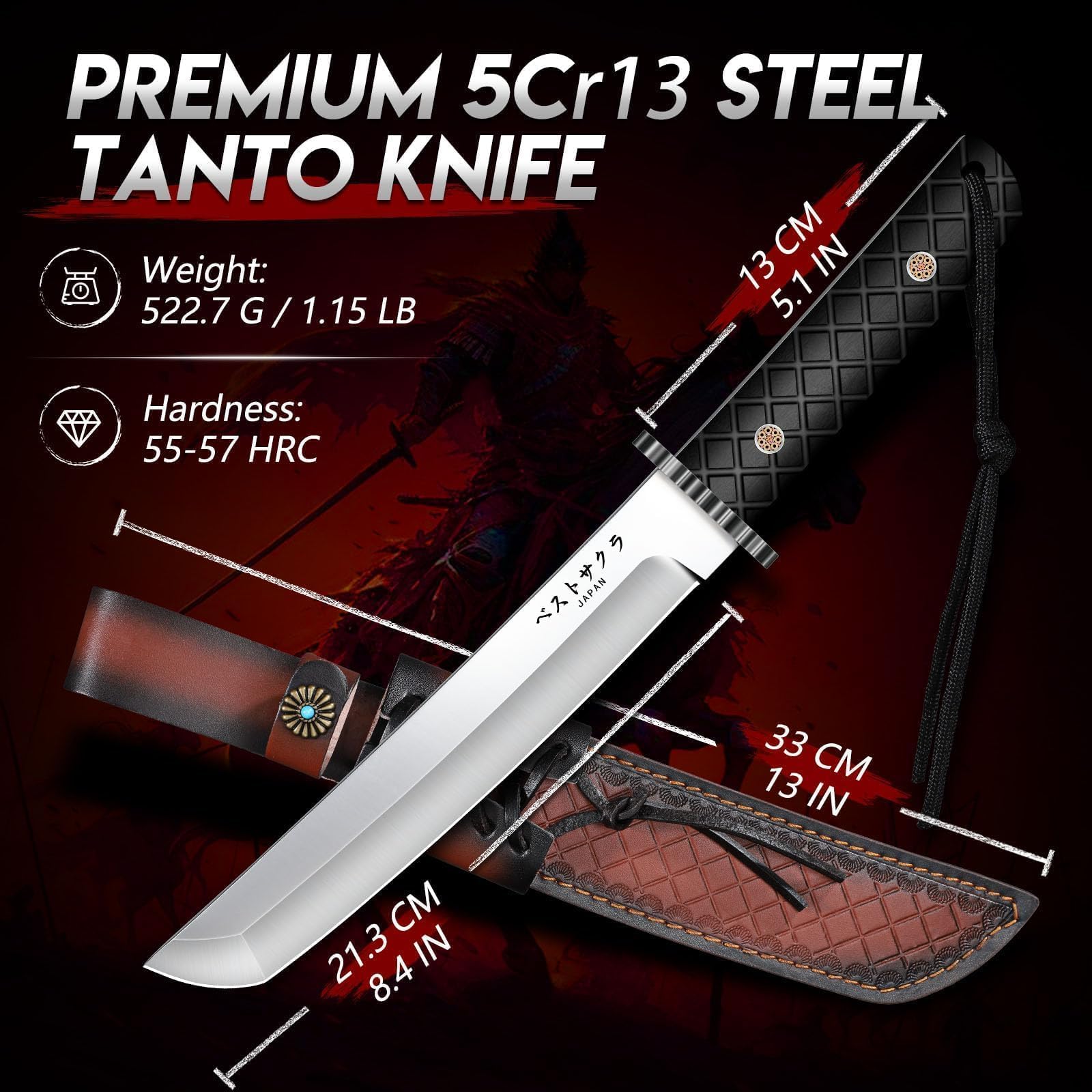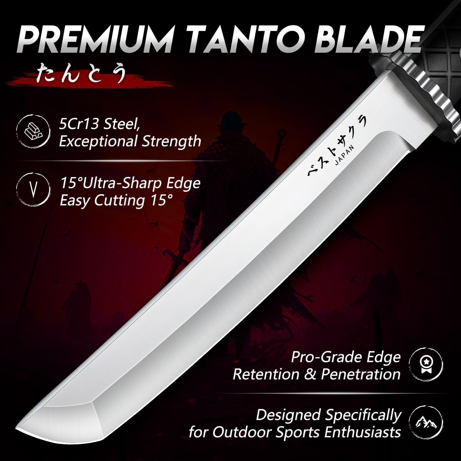 Tanto Blade Performance: Crafted with 5Cr13 stainless steel, this outdoor knife delivers rugged reliability for demanding outdoor use. This outdoor survival knife stays sharp even with heavy-duty cutting, slicing, and carving