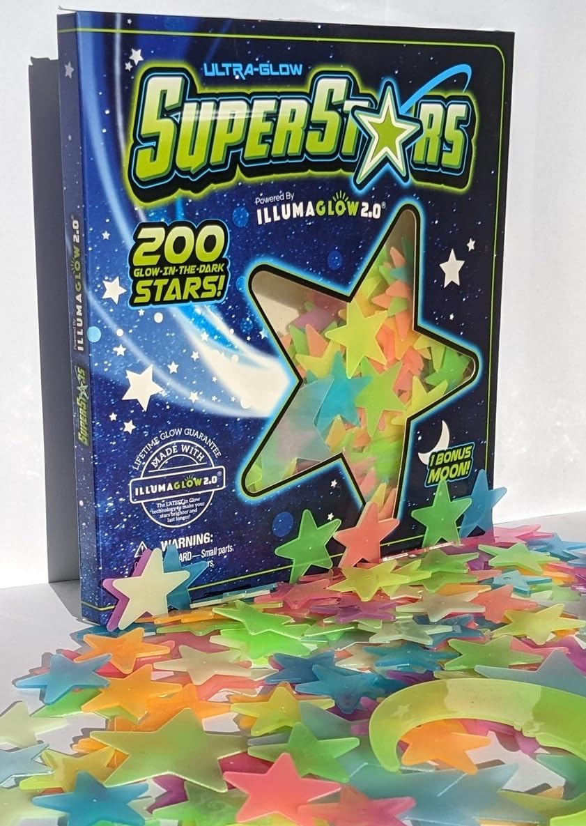 Beware of imitators! Ours are the ONLY Glow stars powered by our trademarked Illumaglow2.0. They are the Originals, Still the best and Now with Improved GLOW again for 2024!! By day, your room and it's existing style/design isn't disturbed. By NIGHT however your bedroom is transformed into a Nighttime Wonderland! Give your kids the same glow stars YOU had, but with our 2024 performance! Great stocking stuffers for kids