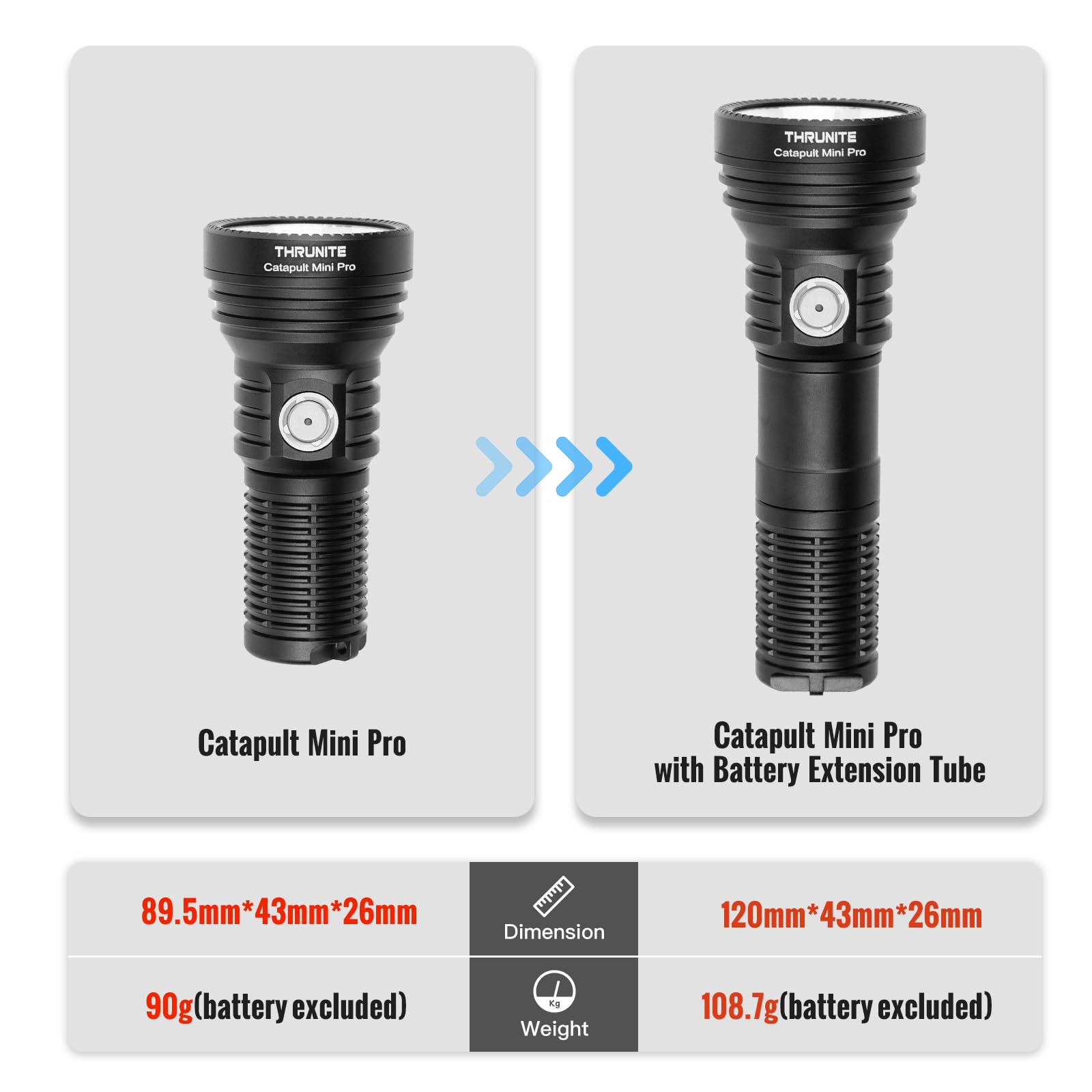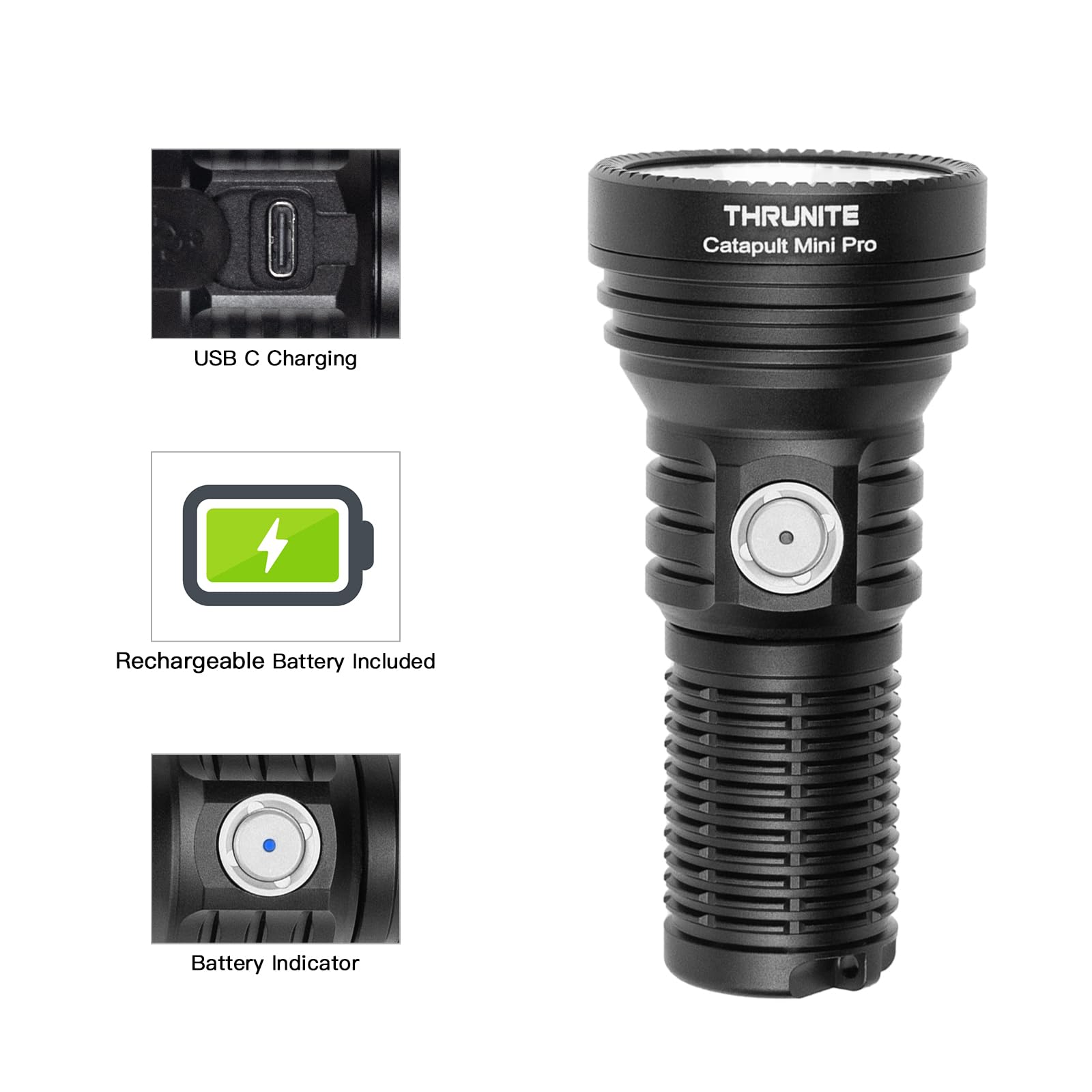 Ultra Bright and Long Throw: Max 2588 Lumens flashlight high performance LED Bulb provides bright light, easily light up to 566 meters/ 619 yards.Equipped with a smooth reflector, the Catapult Mini Pro has an unltra long throw, perfect for outdoor and indoor activities.