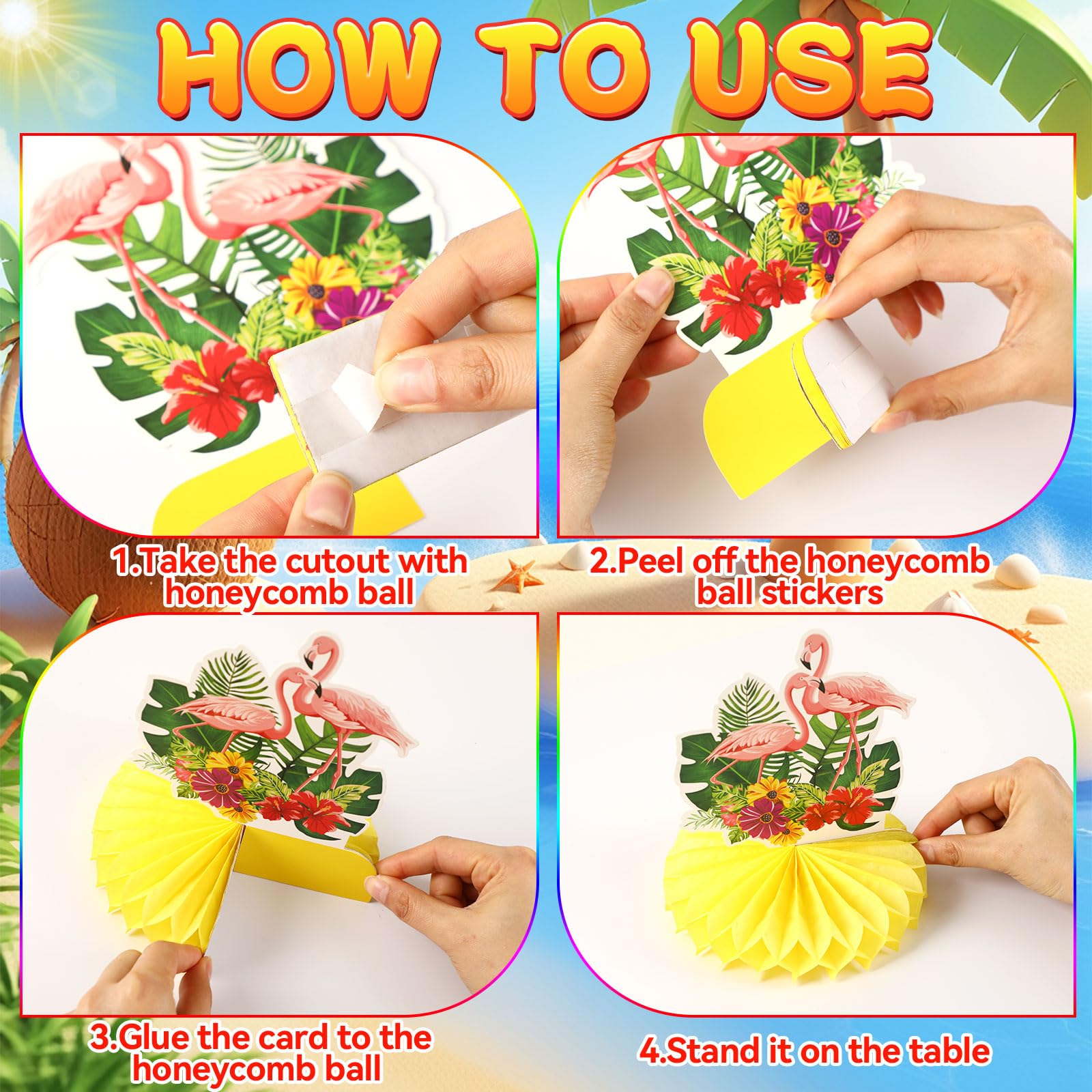Easy to Combine and Use: These Hawaiian honeycomb centerpiece are simple and easy to use. Simply unfold the honeycomb to complete the decoration combination, with simple and fast operation, making luau party decorations convenient for you to save time and achieve ideal results during party decoration