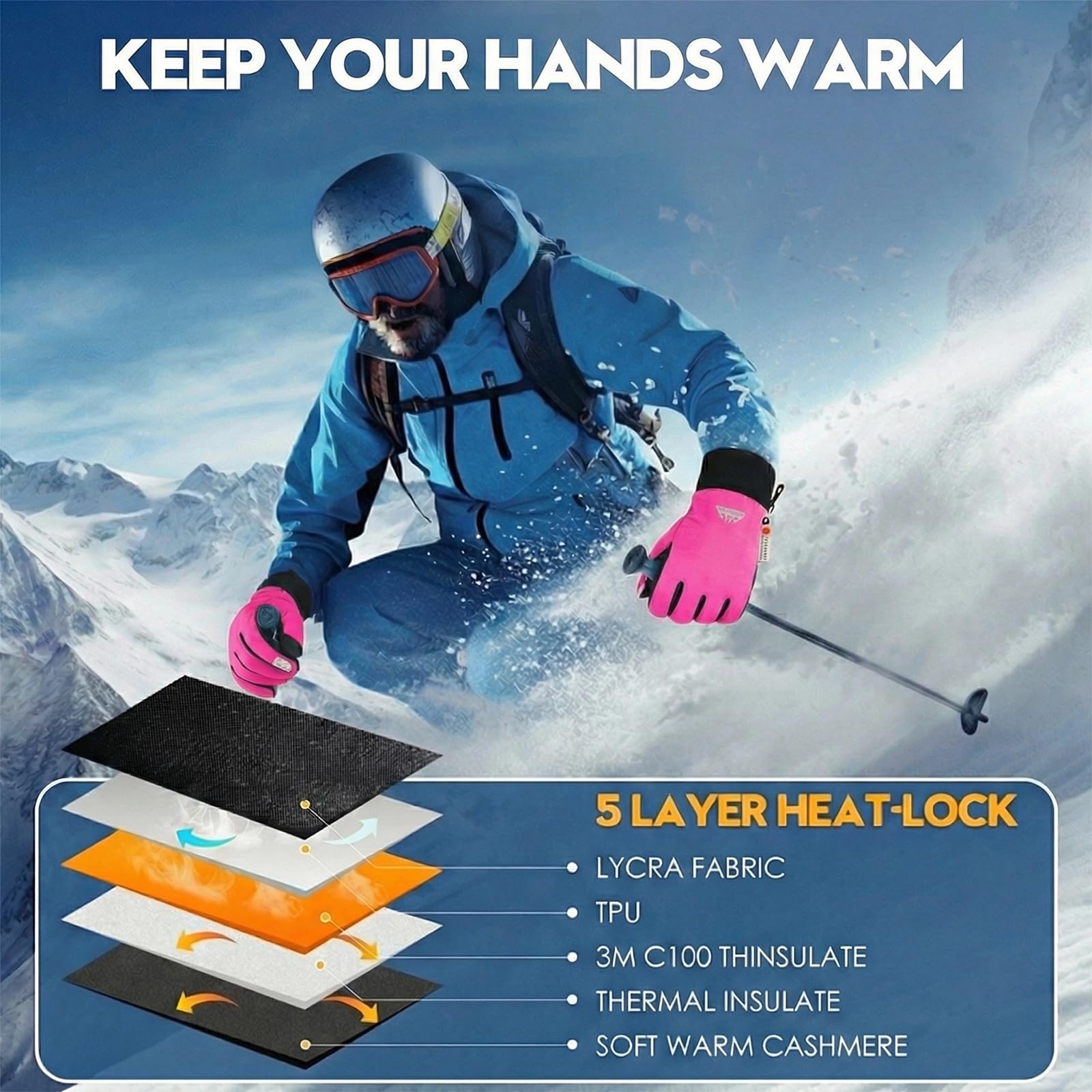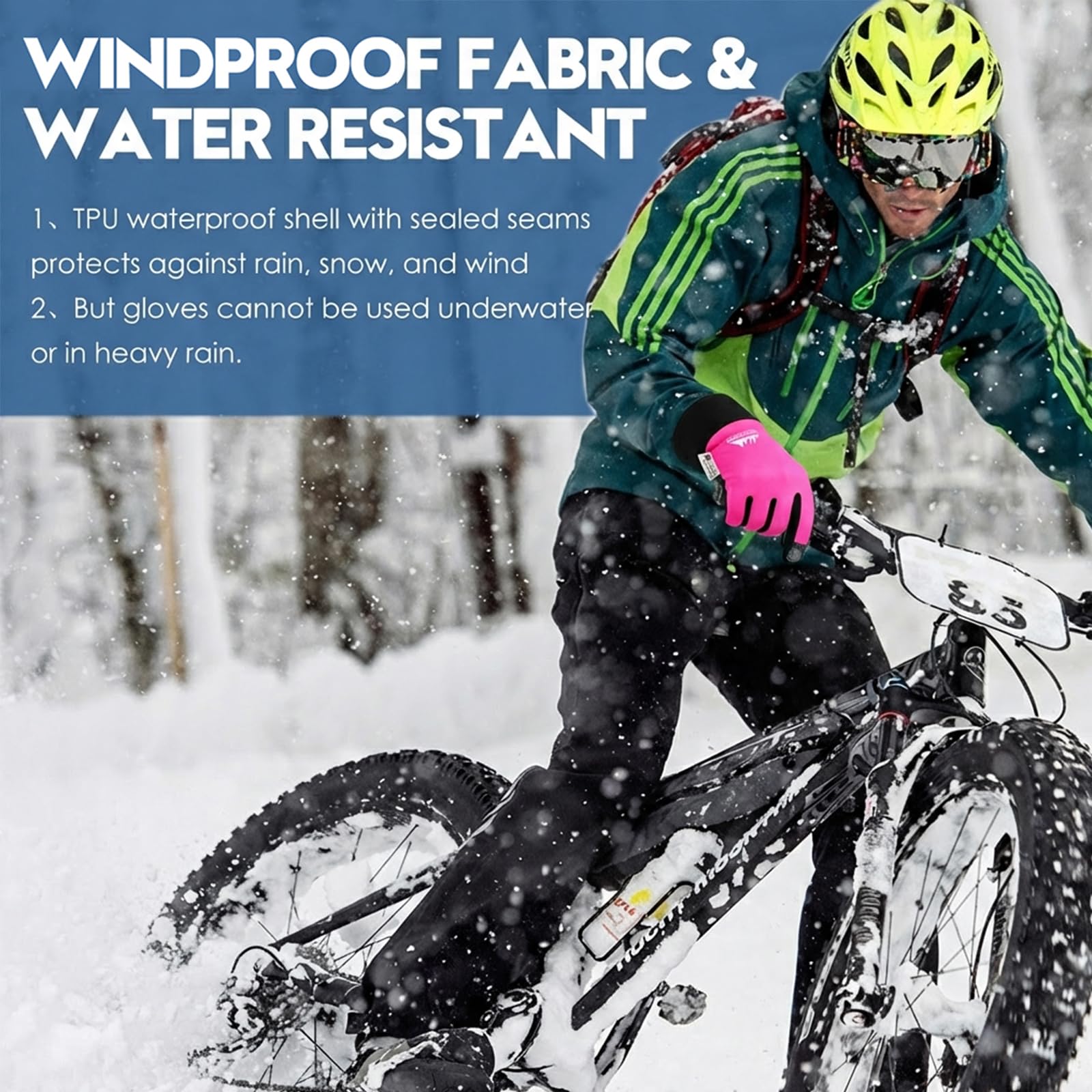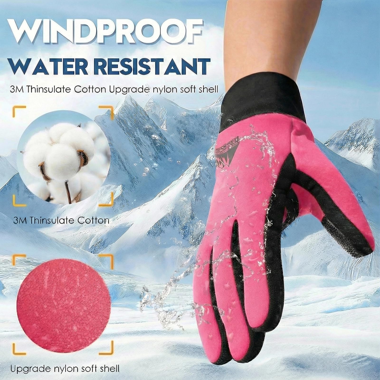 WINDPROOF BACKHAND & BREATHABLE PALM Smart hybrid protection! The back of the hand features a high-density TPU coating that effectively blocks cold wind and repels snow and rain. The palm area is intentionally designed to be breathable (non-waterproof) to prevent sweat buildup, keeping your hands dry and comfortable during high-intensity activities.