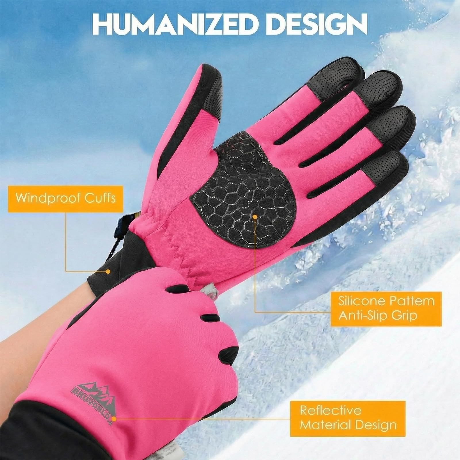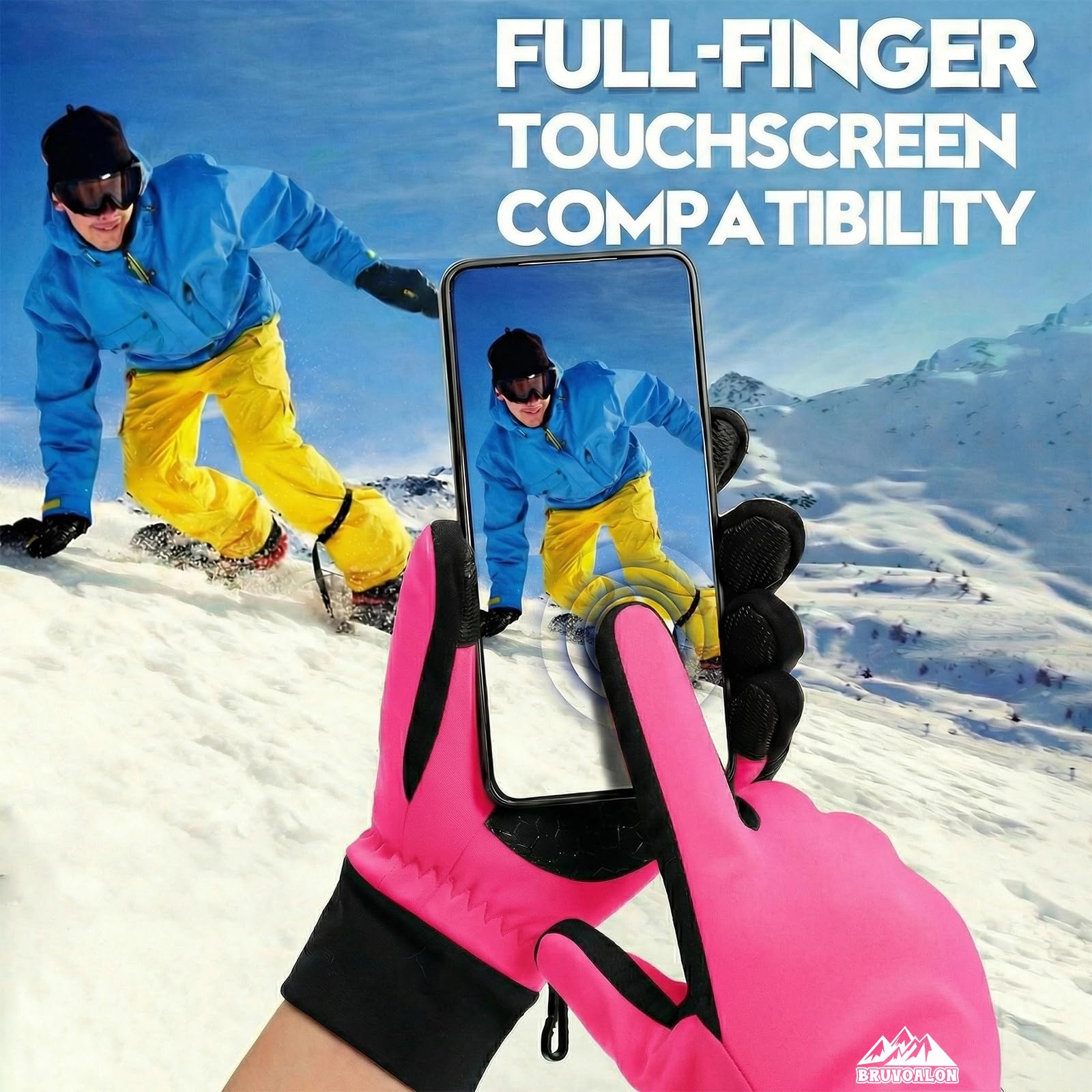 Description Bruvoalon Winter Gloves - Ultimate Protection for Extreme Cold Weather Key Features 1. 3M Thinsulate Insulation Stay Warm: Built with 3M Thinsulate C40 thermal insulation. These gloves lock in heat even in extreme cold weather, perfect for skiing, snowboarding, and winter hiking. Lightweight & Breathable: Despite the high warmth, the gloves remain lightweight and non-bulky, ensuring comfort during long outdoor activities. 2. Windproof & Waterproof Design Windproof Coating: The windproof outer layer blocks icy winds, keeping your hands warm during cycling, running, or winter commutes. Waterproof Protection: The waterproof TPU shell and sealed seams prevent snow and rain from penetrating, ideal for snowmobiling, shoveling, and cold weather work. 3. Full-Finger Touchscreen Compatibility Stay Connected: Upgraded conductive fibers on all fingertips (thumb, index, middle) allow seamless use of smartphones, tablets, smartwatches, and car screens without removing gloves. Perfect for Outdoor Adventures: Whether you're navigating with GPS, taking photos, or answering calls, these gloves keep you connected in freezing temperatures. 4. Anti-Slip Silicone Grip Enhanced Grip Strength: Silicone palm grips increase traction by 50%, ensuring a firm hold on steering wheels, tools, or sports equipment. Durable & Reliable: The anti-slip design provides extra safety during icy conditions, making these gloves ideal for driving, hiking, and outdoor chores. 5. Adjustable Cuffs & Portable Clip Secure Fit: Adjustable Velcro straps prevent snow and cold air from entering, while the elastic cuffs ensure a snug fit. Easy to Carry: The portable clip allows you to hang the gloves when not in use, perfect for traveling, camping, or daily commutes. Why Choose Bruvoalon Winter Gloves? Versatile for All Activities: Whether you're skiing, cycling, running, hiking, or just walking the dog, these gloves are designed to keep your hands warm and protected. Perfect Gift for Everyone: With a stylish design and high-performance features, these gloves make an ideal gift for men, women, friends, and family. Lifetime Quality Guarantee: Backed by a 30-day risk-free return and lifetime warranty, Bruvoalon ensures your satisfaction with every purchase.