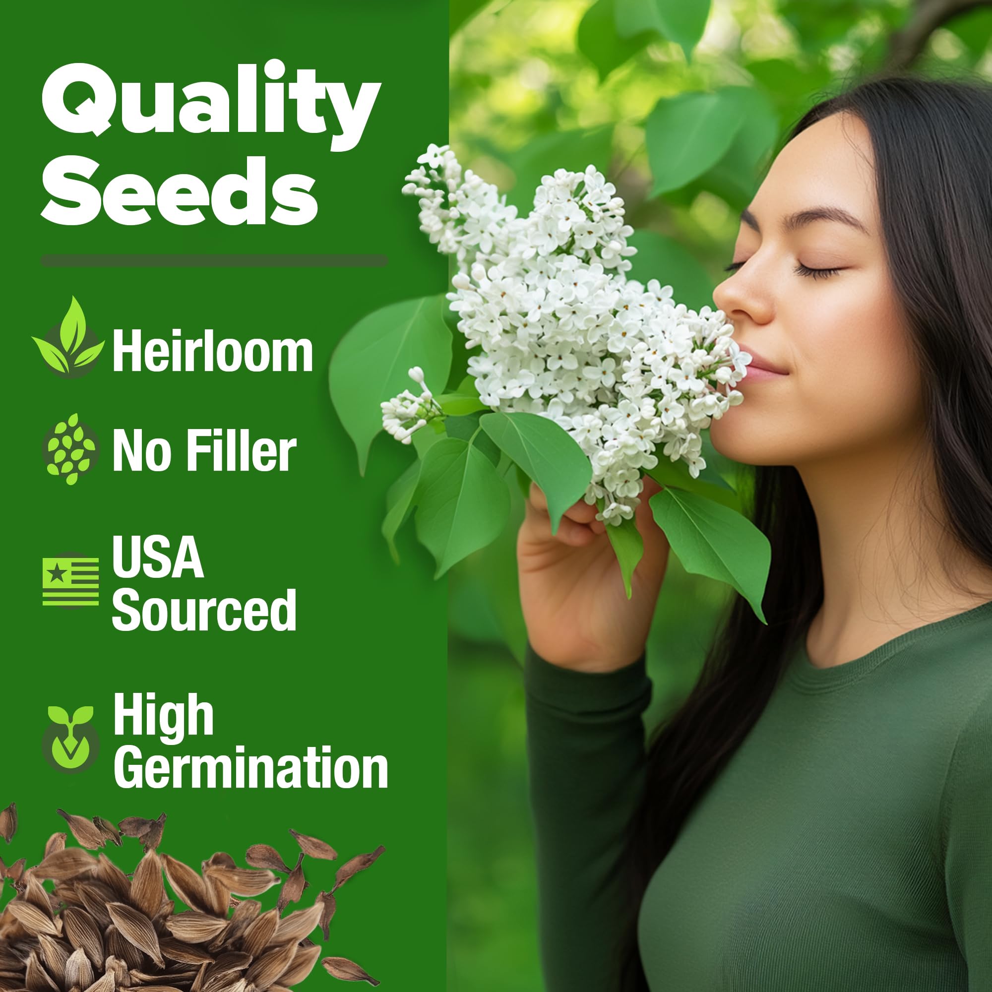 NON-GMO HEIRLOOM WHITE LILAC TREE SEEDS FOR PLANTING: These open-pollinated flower seeds are hand-selected and untreated, offering strong germination for gardeners planting fragrant flowering trees. Packed to resist moisture and light, they support reliable perennial growth in zones 3β7 with minimal maintenance.