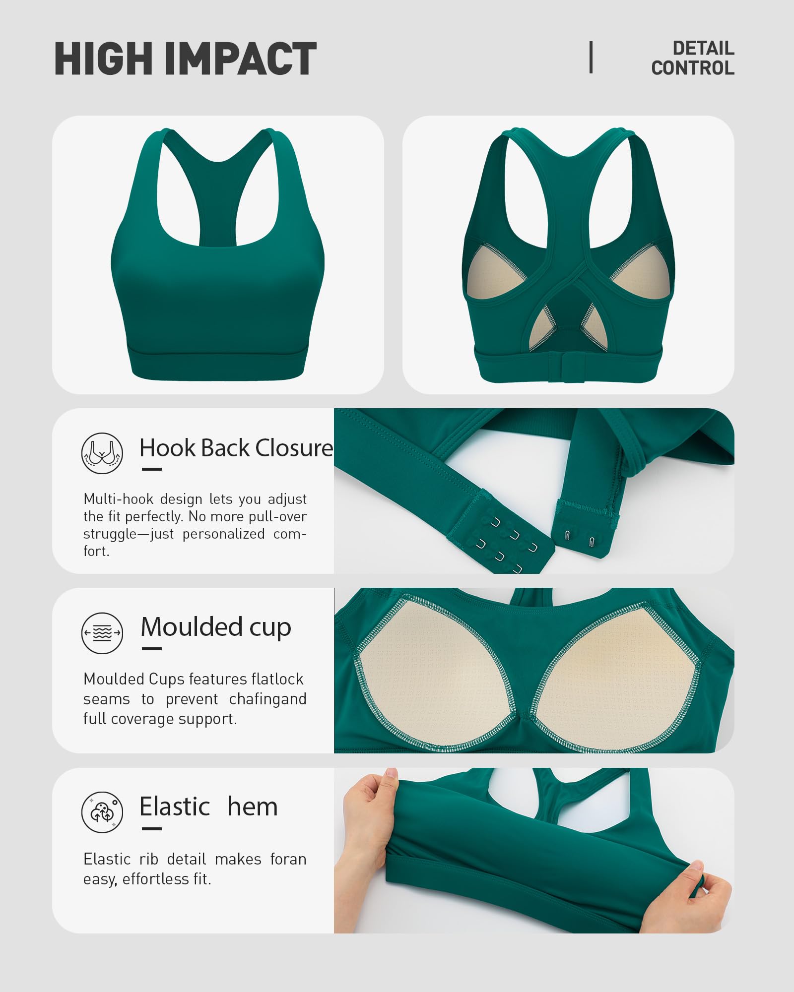 🔹 Hook Back Design:Unlike pull-over bras, our multi-hook back closure allows easy adjustment and a personalized, secure fit—delivering enhanced stability and convenience for high-intensity movement.