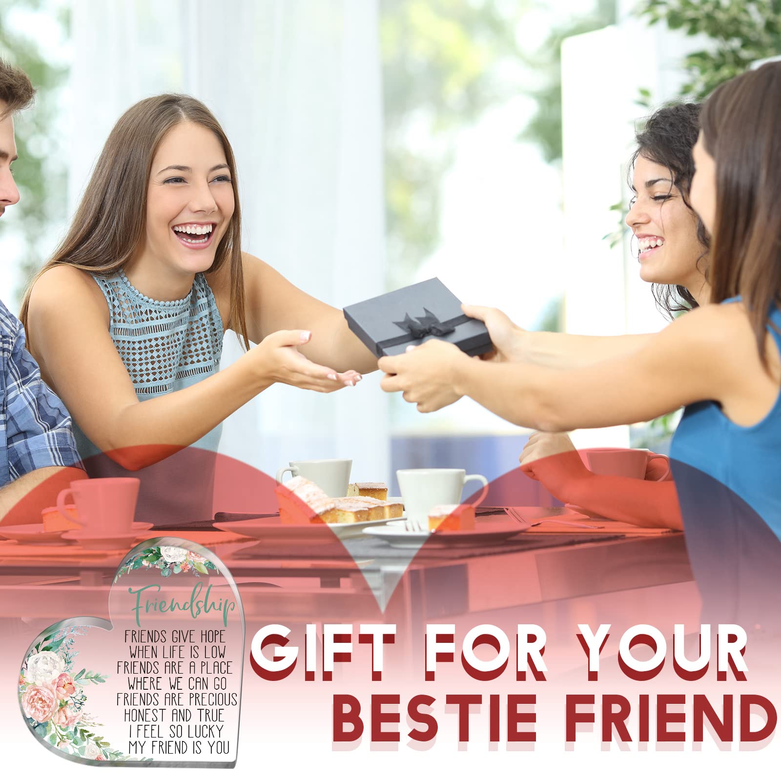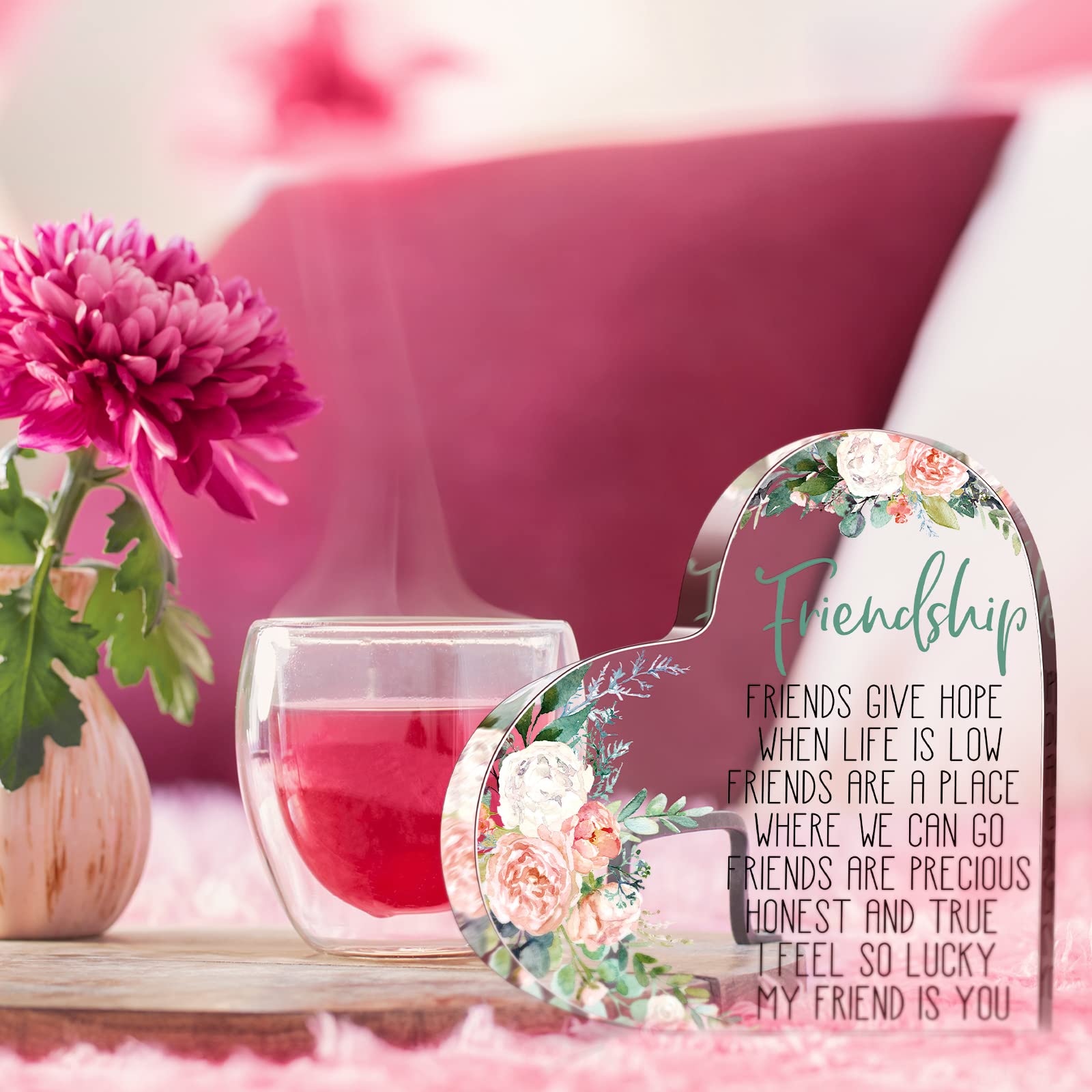 Freestanding Design: our best friend birthday gifts are designed in heart shape, printed with pink flower patterns and warm words, and characterized in flat bottom design, so it can stand upright on any flat surfaces without any supports, which will bring you a lot of convenience