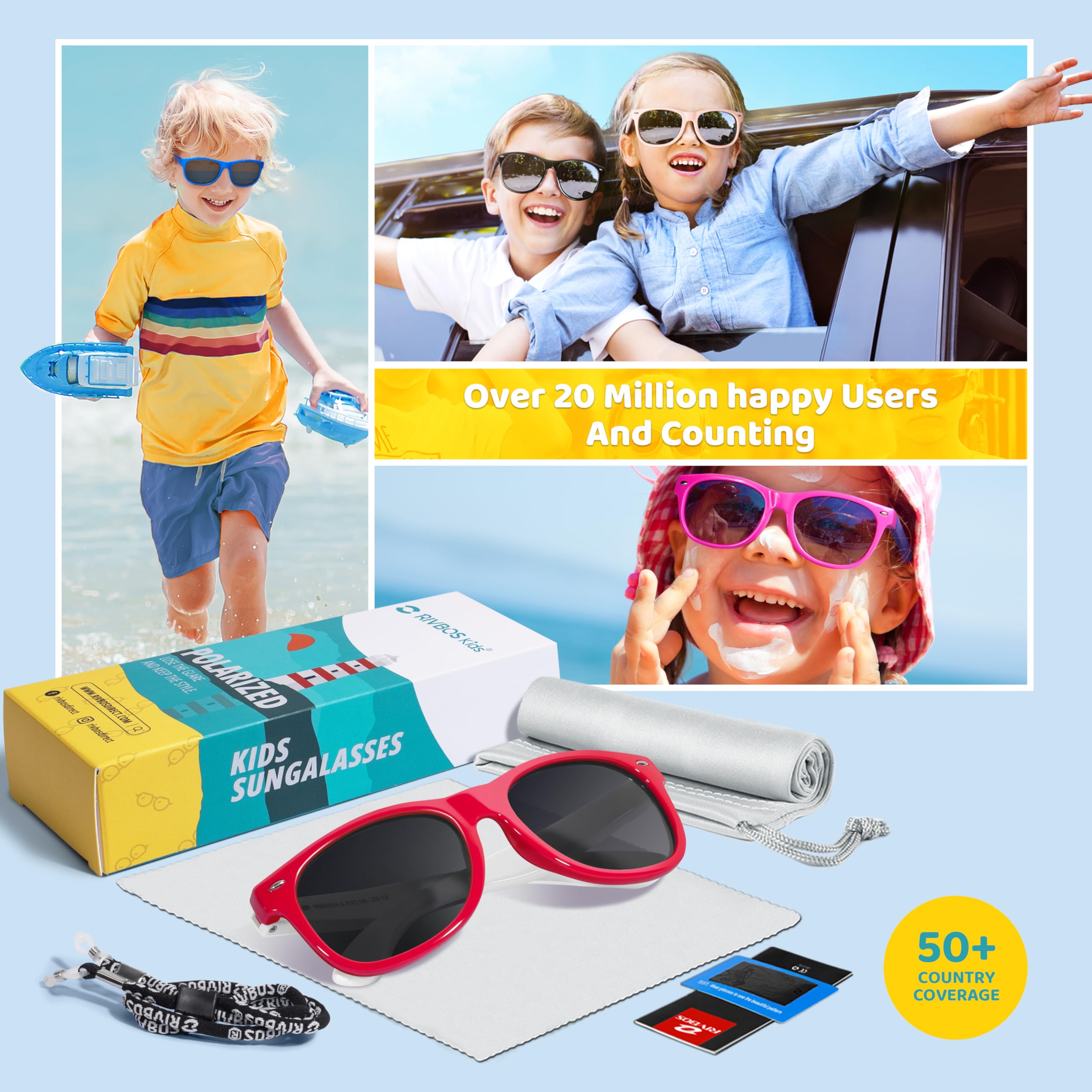 SUPER CUTE AND COLORFUL DESIGN- Our sunglasses provide various color & styles assortment for parents to choose. Both boys and girls can find their suitable sunglasses in RIVBOS store.