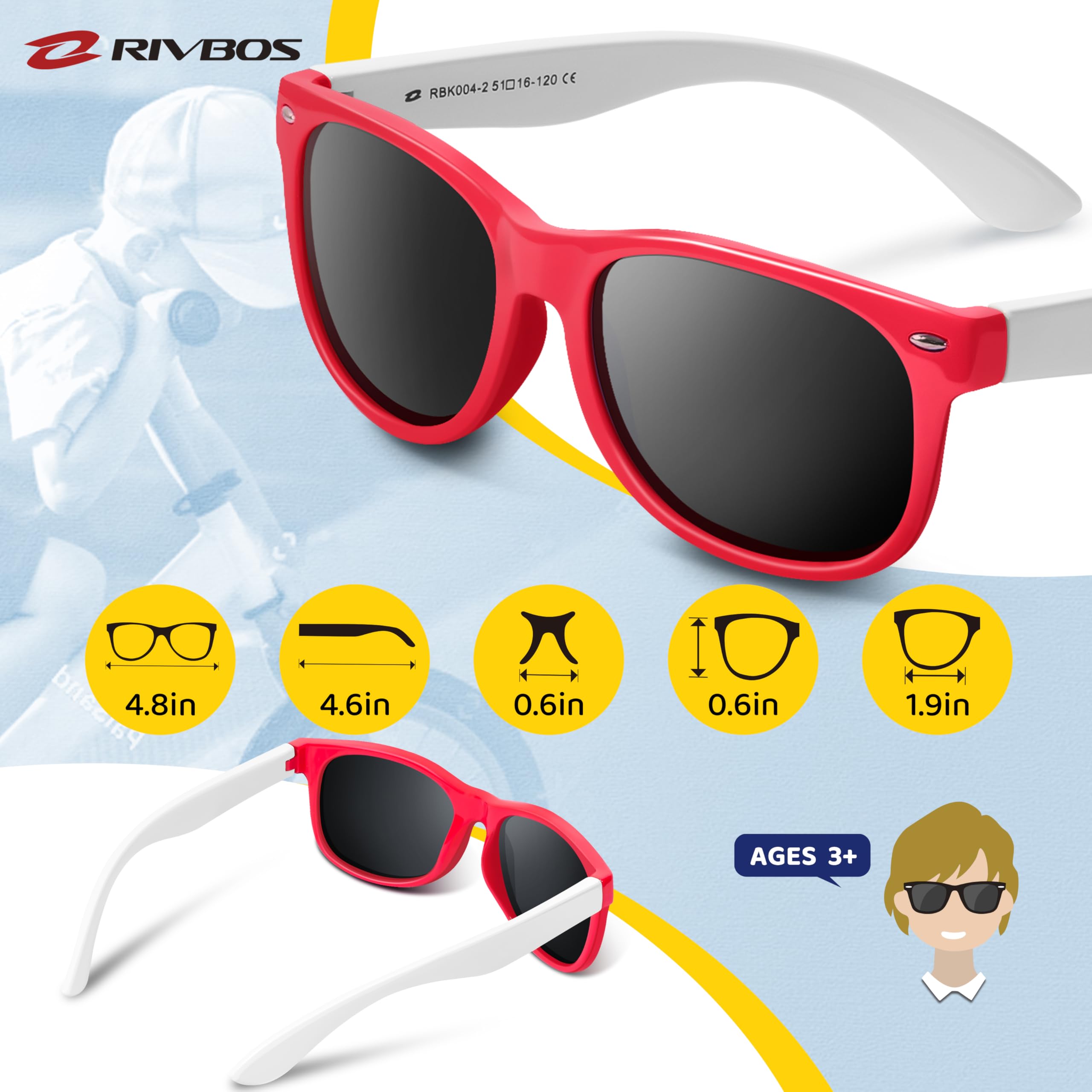 SAFE AND COMFORTABL - RIVBOS sunglasses frame is made of soft silicone and unbreakable material, which is not easy to break, very durable, and also provides a comfortable wearing experience.