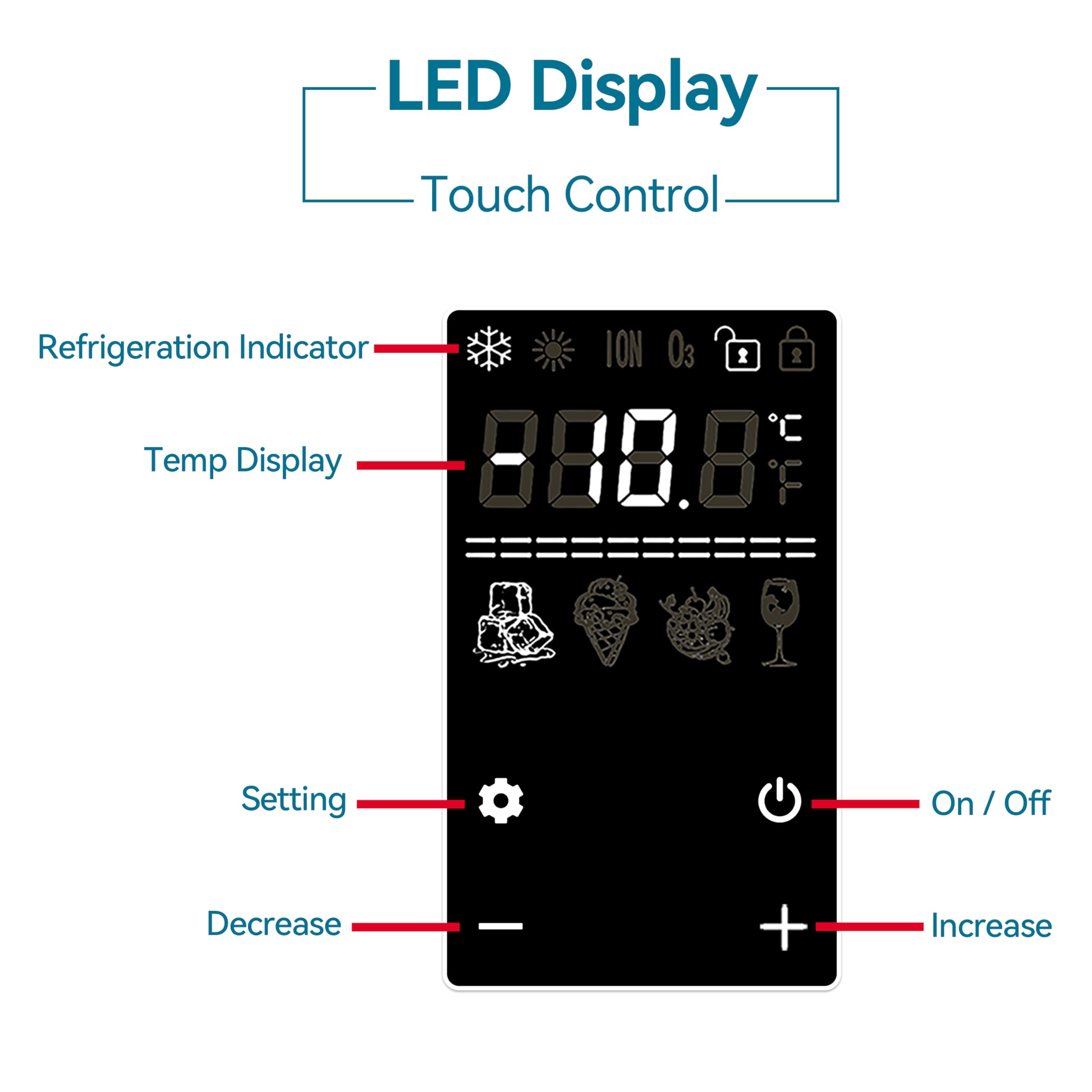 TOUCH CONTROL AND LED DISPLAY: Adjusting the temperature between -18℃ (-0.4℉) and +15℃ (59℉) on the Touch Screen; it can be a portable refrigerator or a portable freezer, the HIPS inner tank can hold not only food and drinks but also ice cream, meat, and other items; the round design of the fitting makes cleaning easy.