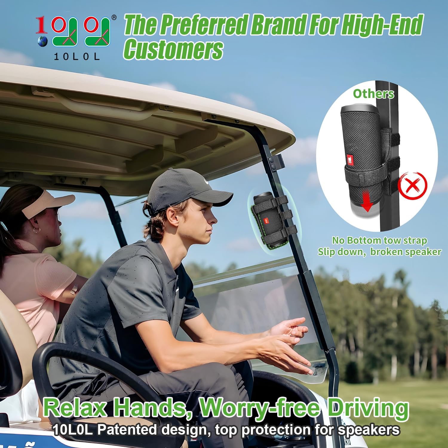 Sturdy and Durable: Our speaker mount are constructed of a durable high-quality fabric that will not fray or break. With reinforced stitching, our golf cart speaker strap are made to last for years to come. 19.1 inches long , Maximum inner ring circumference 13.2 inches - a perfect size for most speakers.