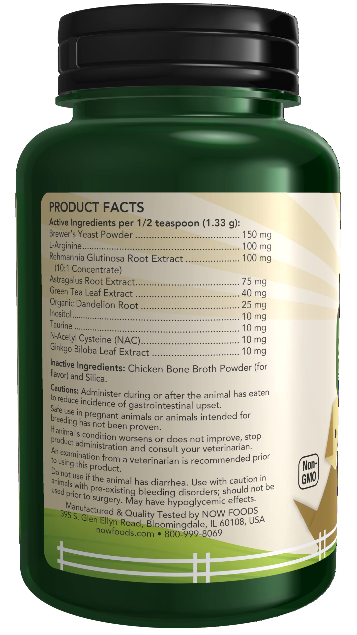 Kidney Support powder for dogs and cats is designed to support normal function and health of the kidneys and help enhance renal function. NOW® Pets Kidney Support is made with botanicals, antioxidants, arginine and taurine. For more flavor, we added chicken bone broth, sourced from the USA, which is growth hormone and steroid free. Formulated by renowned veterinarian Dr. Barbara Royal, DVM, CVA, founder of the Royal Treatment Veterinary Center.