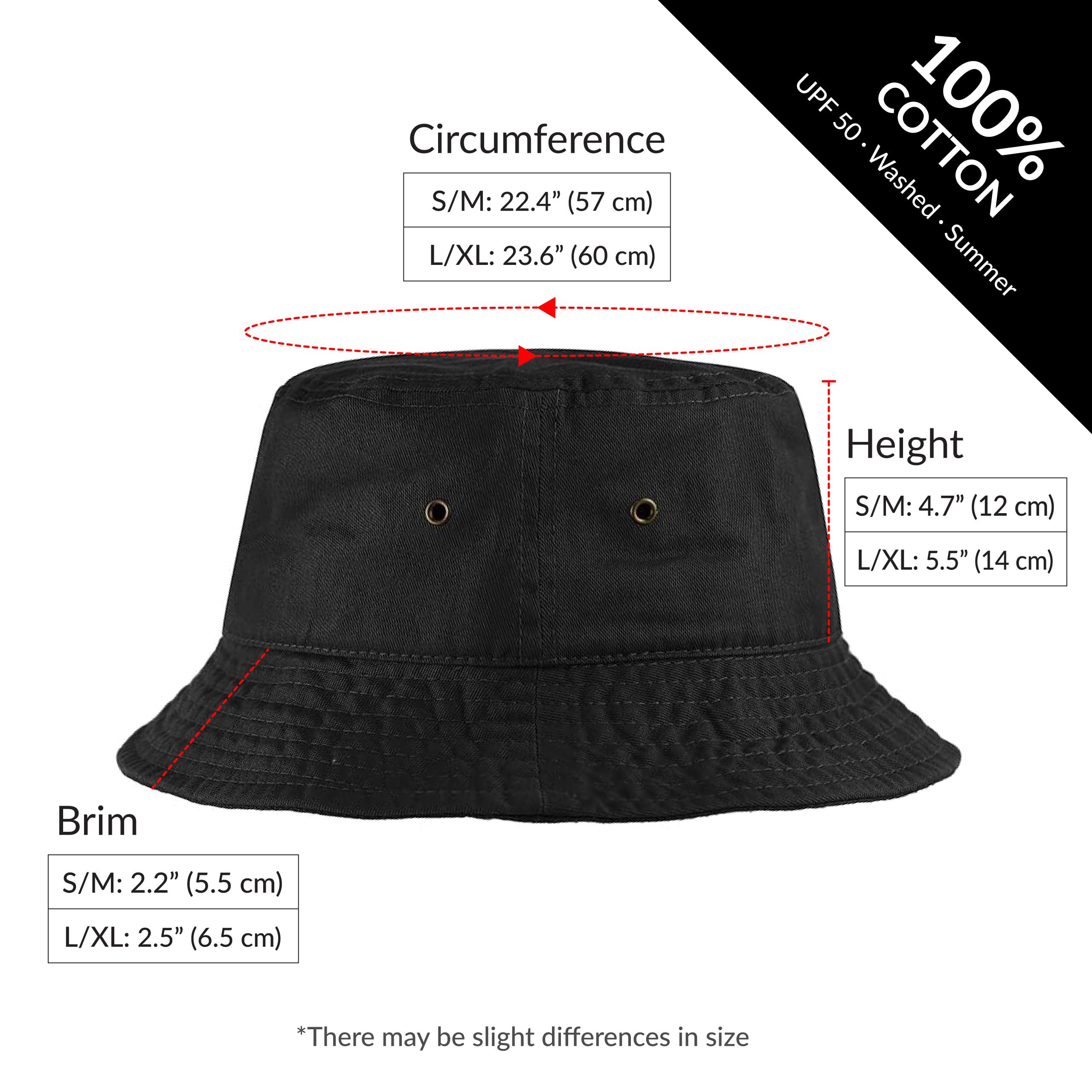 HAT SIZE & COMFORTABLE FIT Designed for a cute and comfortable unisex fit. Size options include S/M (22"–22 3/4" / 56–57.8 cm) and L/XL (23 1/8"–23 7/8" / 58.7–60.6 cm) with a 2–2.25 inch brim for balanced sun protection and everyday wear.