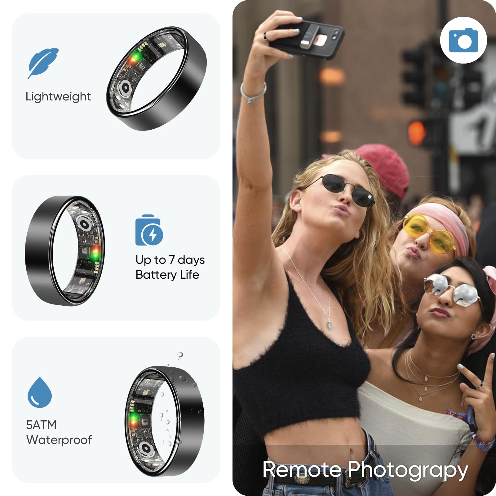 【5ATM Water Resistance】This smart ring features a fully sealed design with 5ATM water resistance, so you can wear it worry-free while swimming, diving, showering, or exercising. Plus, its sleek, lightweight profile makes it a stylish accessory that fits effortlessly into your daily life.