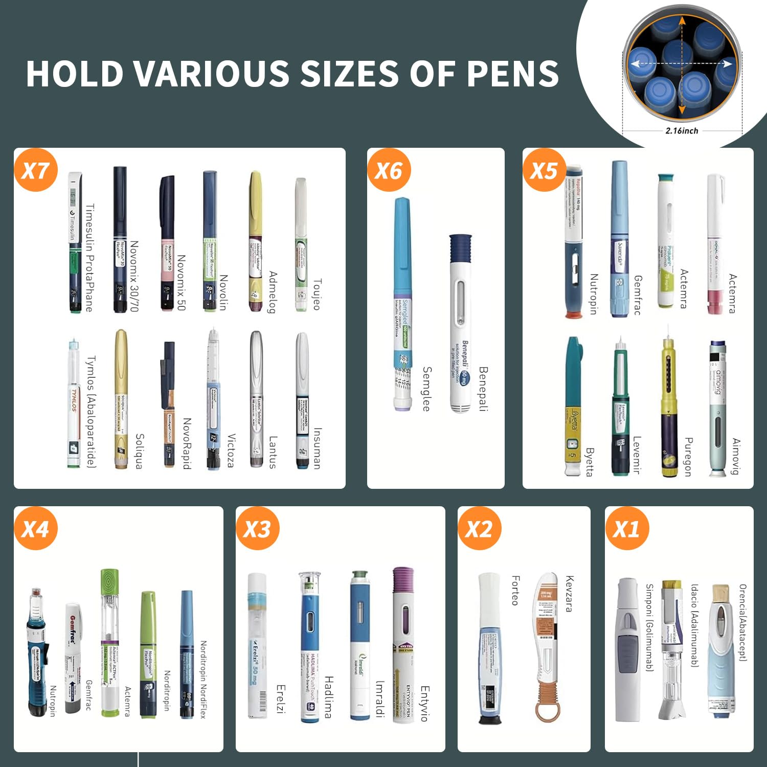 [LARGE CAPACITY] The insulin travel case with 0.3L internal capacity space can carry more medicines while traveling. Which can hold multiple vials, up to 6 insulin pens, or 20 insulin bottles, which makes it the perfect companion for daily business trips to the office or traveling with family and friends. (The insulin holding capacity varies with different sizes)