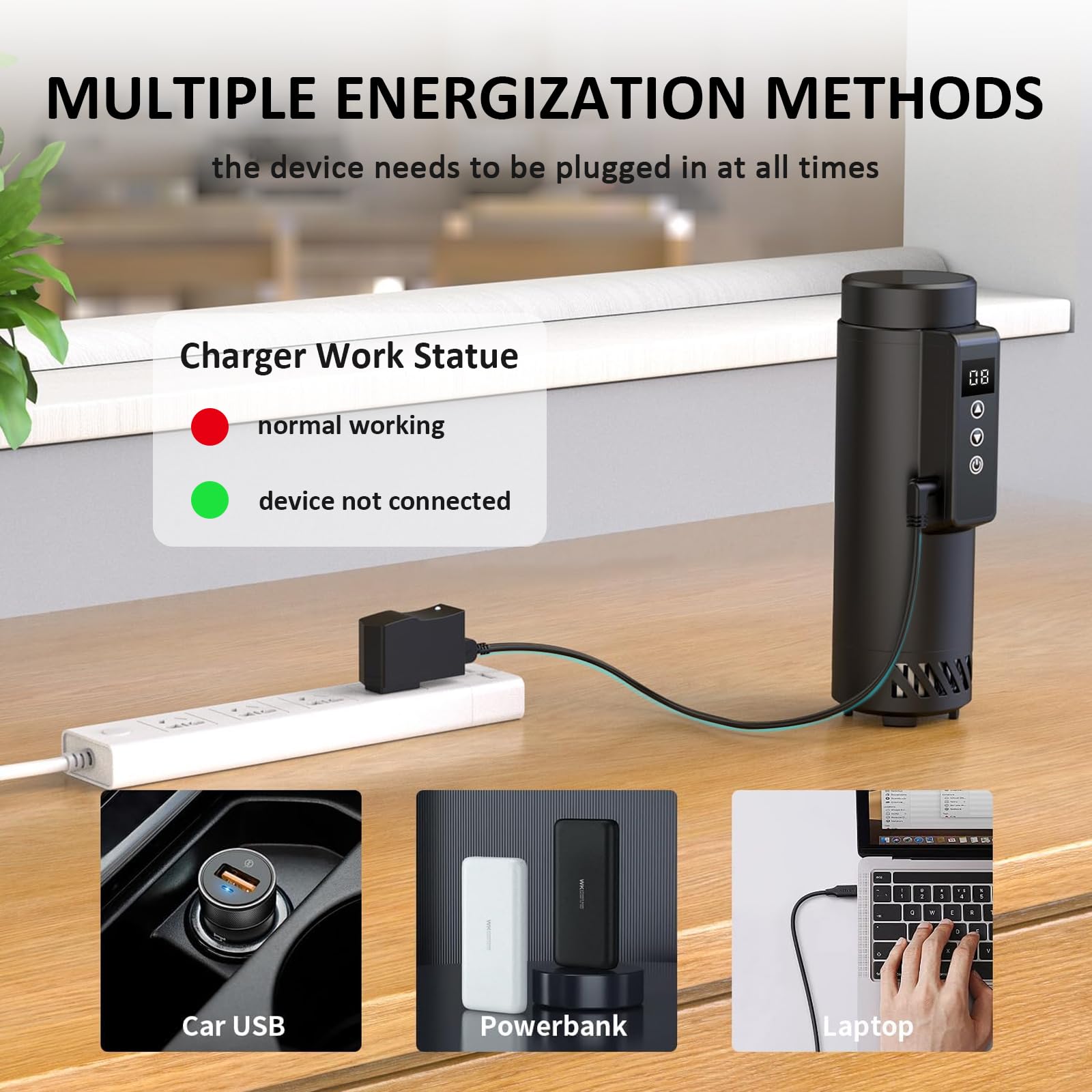 [NOTE TIPS] Ⅰ. The refrigerated cup must be working in the state of power supply, without power cannot be working. Ⅱ. Because of charger, cars, and mobile power of the supply are different, so there will be differences in the cooling speed. Ⅲ. Due to the difference in environmental temperature of the outside world, it will also affect the temperature and temperature of the cup.
