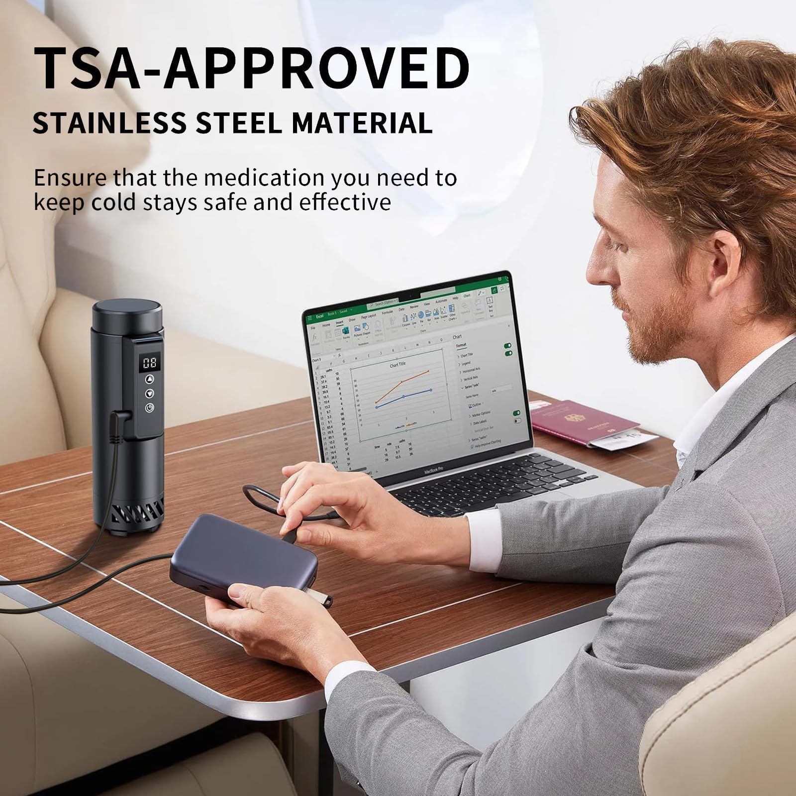 [NEW MEDICAL COOLER 2.0] The cooling bottle through charger powered can be used to use to keep the internal temperature cooler than the external temperature, and keep the temperature in a low temperature range when device be plugged in at all times, which ensuring that the medications you need to refrigerate are safe and effective.