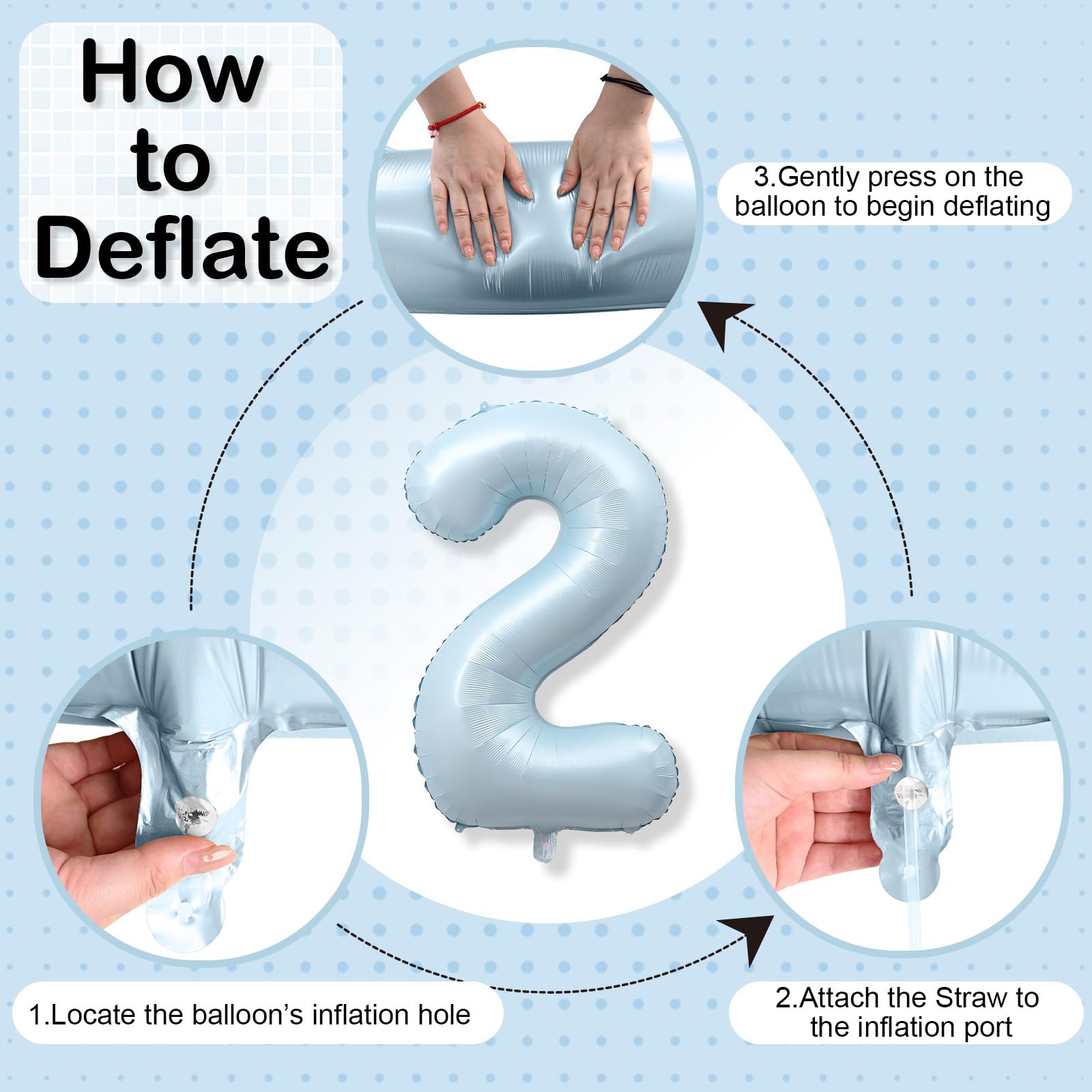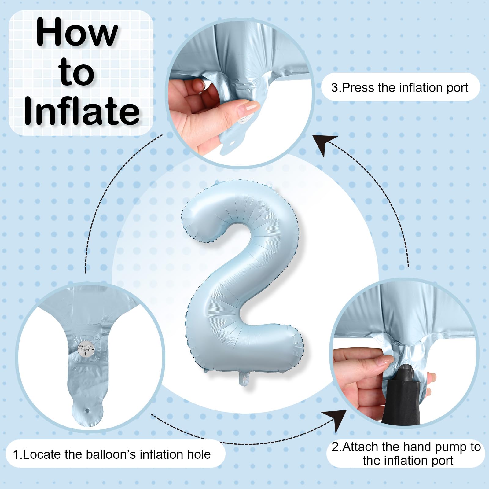 【Easy Inflation & Setup】: The light blue giant number balloon is designed for quick and easy inflation with either helium or air. It features a self inflating valve for convenient use, allowing you to quickly set up and enjoy the decorations without any hassle. For optimal use, inflate the balloon to 90% capacity only to prevent over-inflation and bursting.