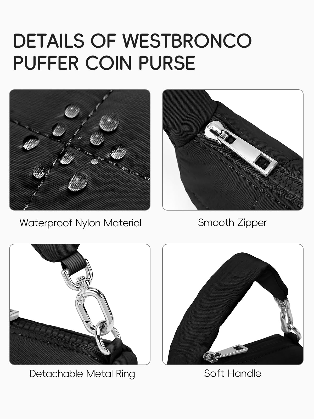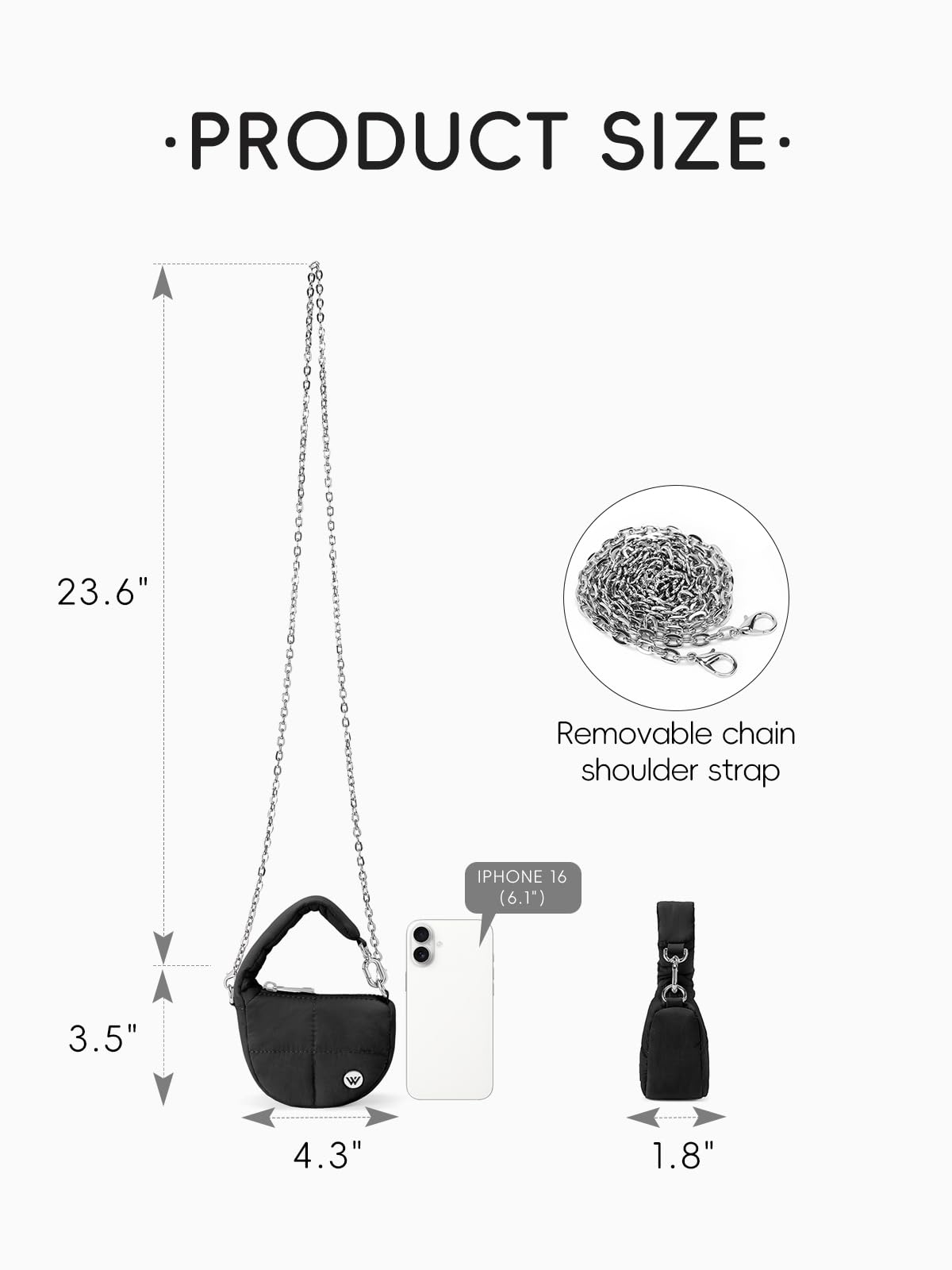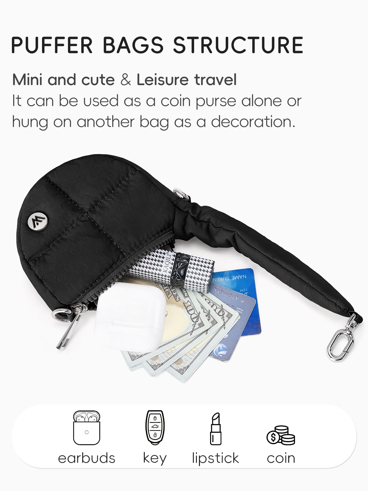 ✅Super Mini & Durable: Measuring just 4.3" x 3.5" x 1.8"(L*H*W) and weighing only 0.26 lbs, this mini puffer purse is crafted from water-resistant nylon to keep essentials safe and dry.
