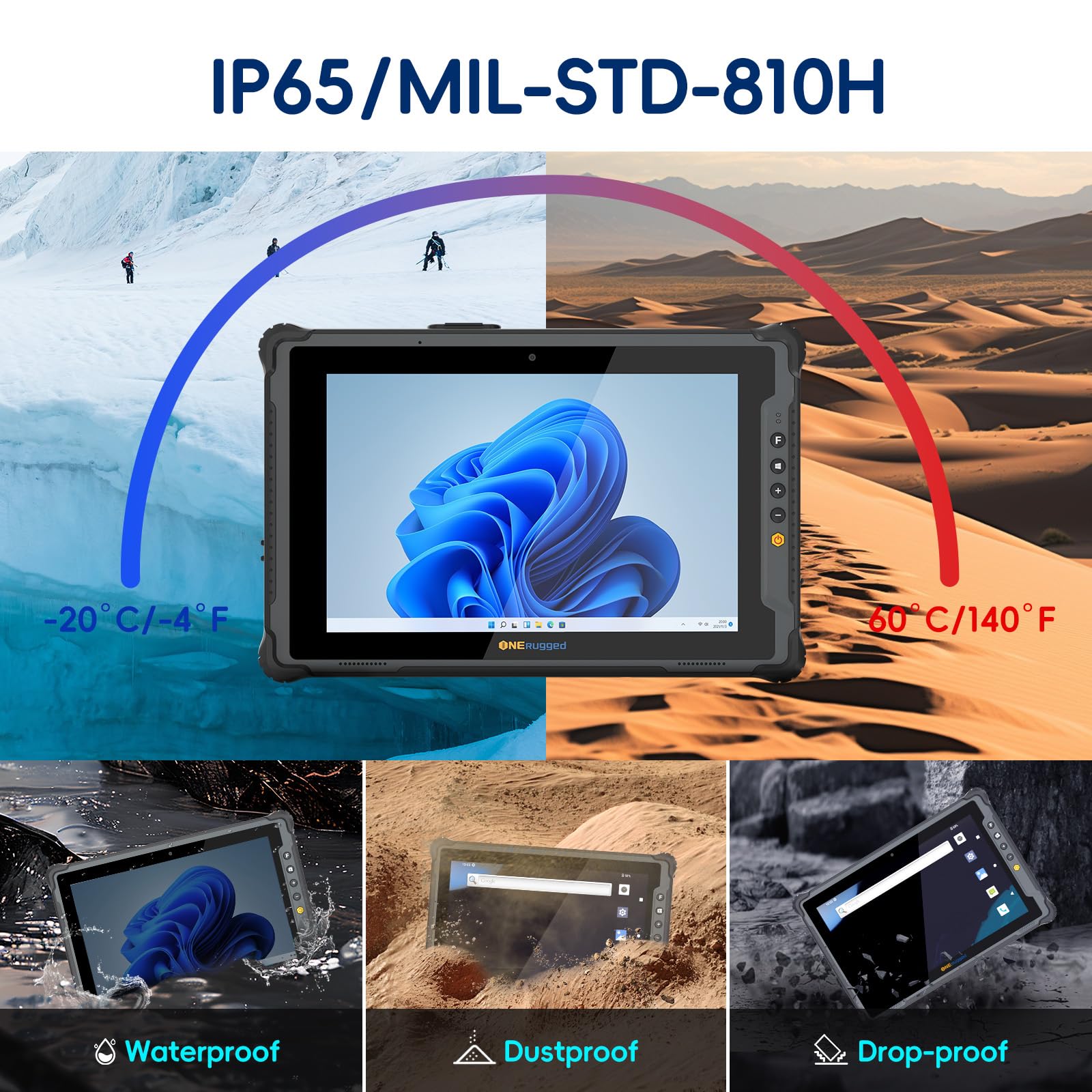 [ IP65 + MIL-STD-810H ] - Professionally certified with IP65 & MIL-STD-810H tested, it can withstand accidental drops from up to 4 feet, powerful water jets, extreme temperatures, moisture and dust without any damage. This industrial tablet is perfect for fieldwork, construction sites, warehouses and explorers, ensuring efficient task accomplishment in challenging environments