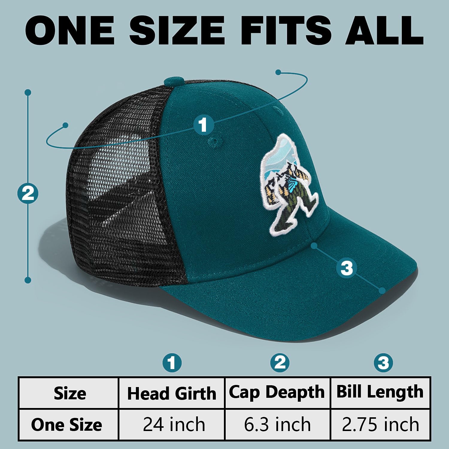 Breathable Mesh Back&Soft Sweatband: The mesh back of our Sasquatch hat is designed for breathability and comfort, making the Bigfoot hat perfect for long hours of wear. The Sasquatch hat's soft cotton sweatband feels great against your skin and allows for easy movement. This essential accessory prevents sweat from dripping into your eyes when outdoors.
