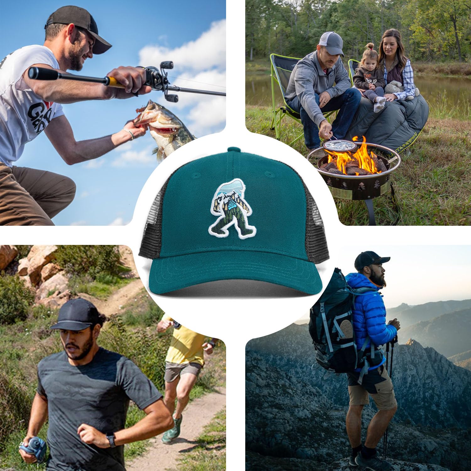 Wild Bigfoot Designs: Features a Sasquatch logo that combines forest and mountain designs embroidered on the front of the Bigfoot hat. These trucker hats will soon become your favorites. Because you will get comments and compliments on it wherever you wear this Sasquatch hat.