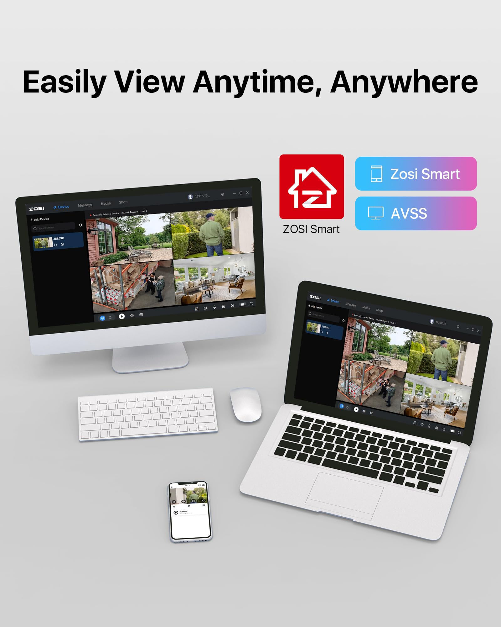 (3). [ Local or Remote Access, Playback Anytime & Anywhere ] __ View and control your security system locally by connecting the system to a monitor without internet, or via free ZOSI Client software on tablet, PC, or via Smartphone APP (ZOSI Smart ) on mobile devices remotely.You can also playback significant evidence or funny videos records by searching different days, hours or minutes.