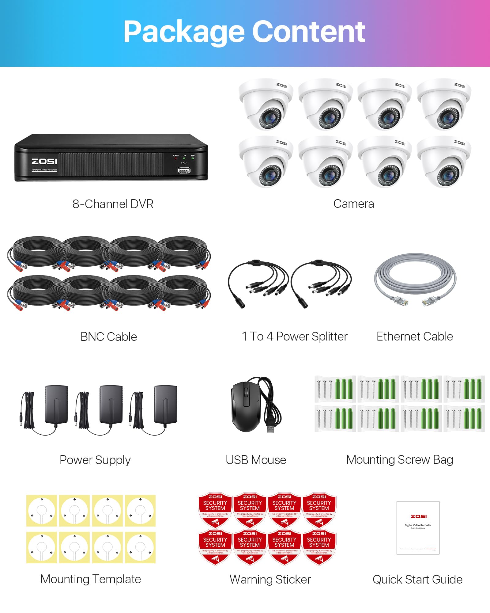 (5). [ Customize Each Camera with Different Record Modes ] __Our ZOSI DVR offers 4 kinds recording modes to meet your needs: Record footage continuously; Record during scheduled times; Only record when detect motion; Recycle record. You can customize each camera with different recording modes, and download the recording files for the USB backup.
