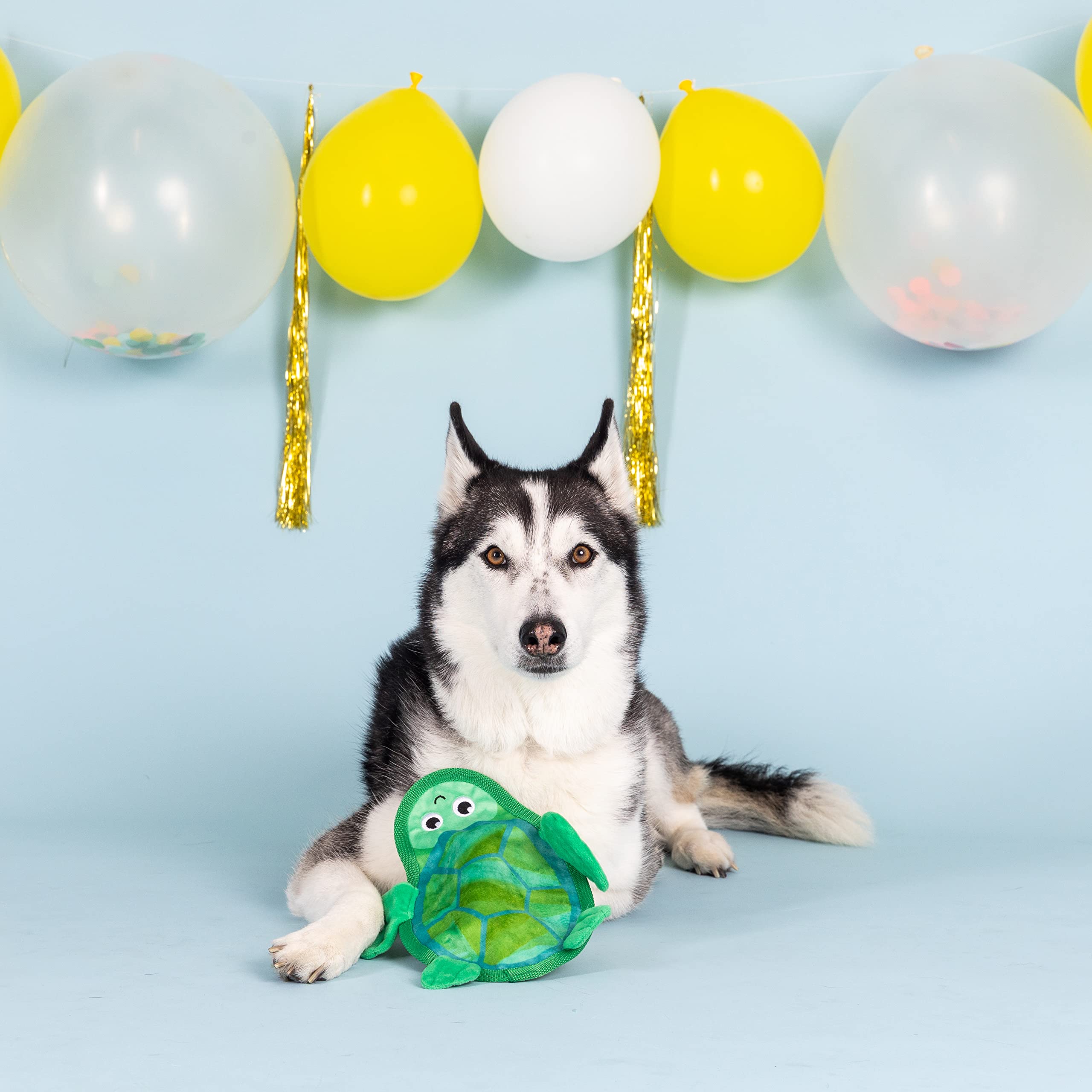 Slow and steady wins the race! Petshop by Fringe Studio “Shell of a Time” is built to last through the toughest play dates. Made with chew resistant interior materials, extra durable binding, crazy crinkle paper and a super louder squeaker, this unfilled durable toy was designed with extended playtime in mind. Your pup will see this toy is turtle awesome. Great for all sized dogs and good for tough chewers.
