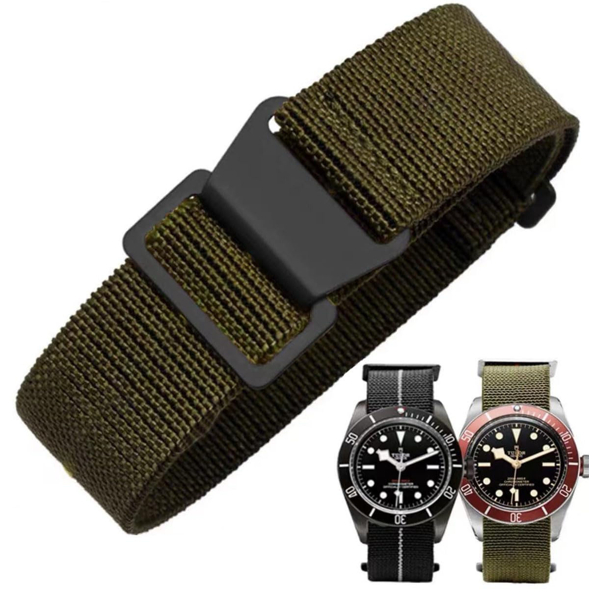 High Quality:This paratrooper-style strap is made from super stretchy nylon-like fabric elastic to ensure a perfect fit for any wrist size. This material has an exceptionally tight yet breathable, soft Twill Weave of polyester and rubber, with reinforced edges that prevents unraveling and shape change when stretched. Danxancy MN style watch strap finish your timepiece deserves.
