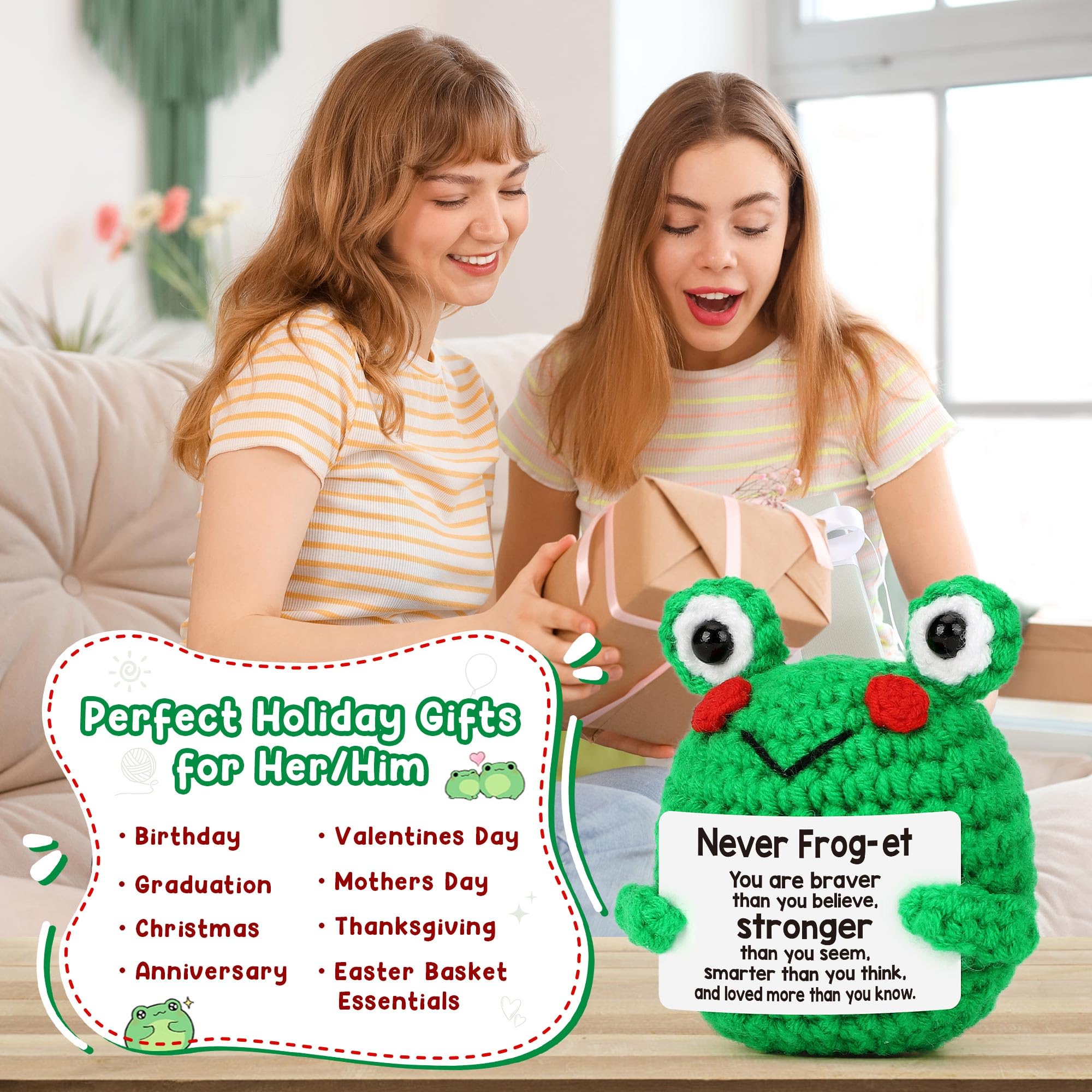 Thoughtful Holiday Gifts for Women Men: Little frog contains great strength and motivation, this knitted frog not only can be as a cheer up frog but also can gift on birthday, retirement gift for woman, funny easter basket stuffers, mothers day for mom or grandma, Teacher Appreciation Week, Christmas stocking stuffers, etc