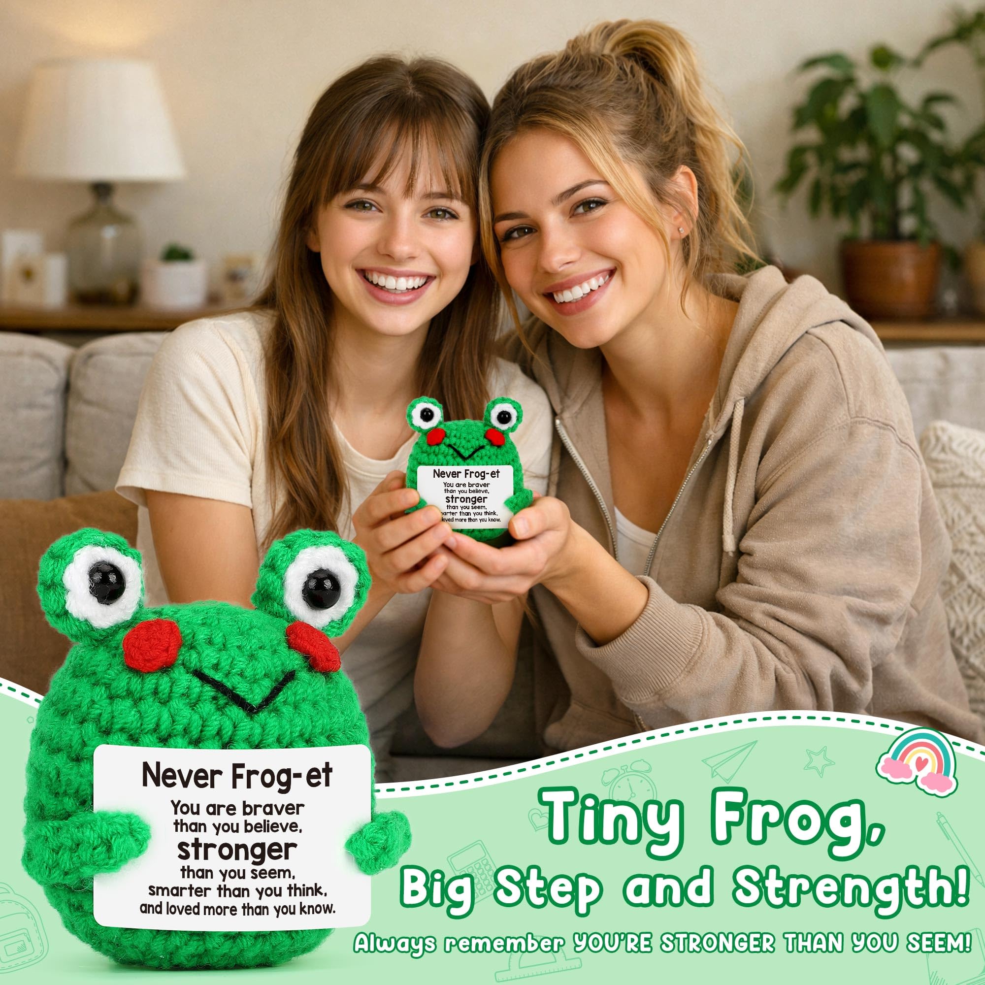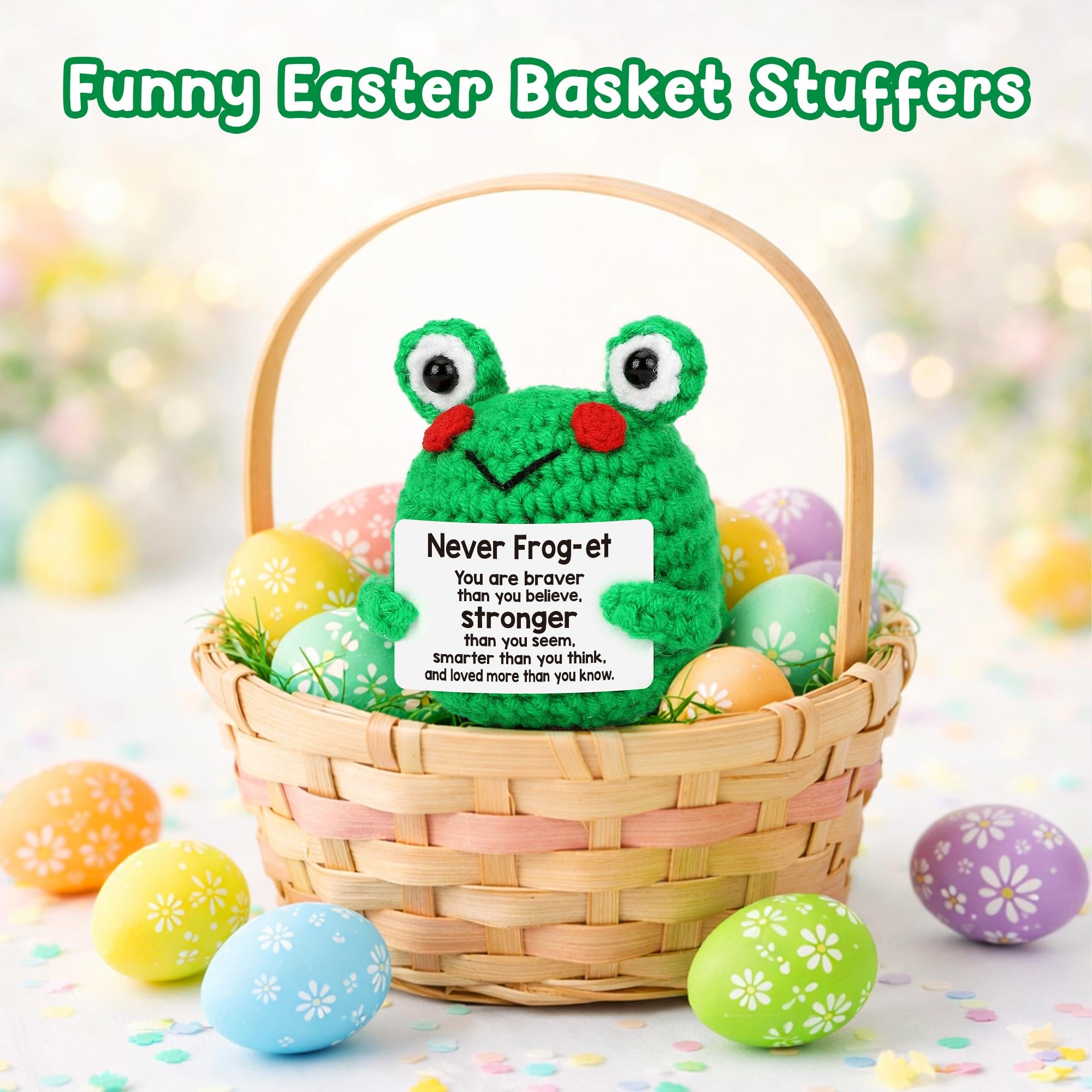 Funny Easter Basket Essentials for Teens: Cute soft and mini size crochet frog, you can get it to fill your easter egg and surprise her/him; Little pick-me-up gift for women or men, small frog will be an extra unique love hug gift and a perfect reminder that I may be a tiny frog, but I believe in you, just go do your things; Never forget you're froggin Awesome
