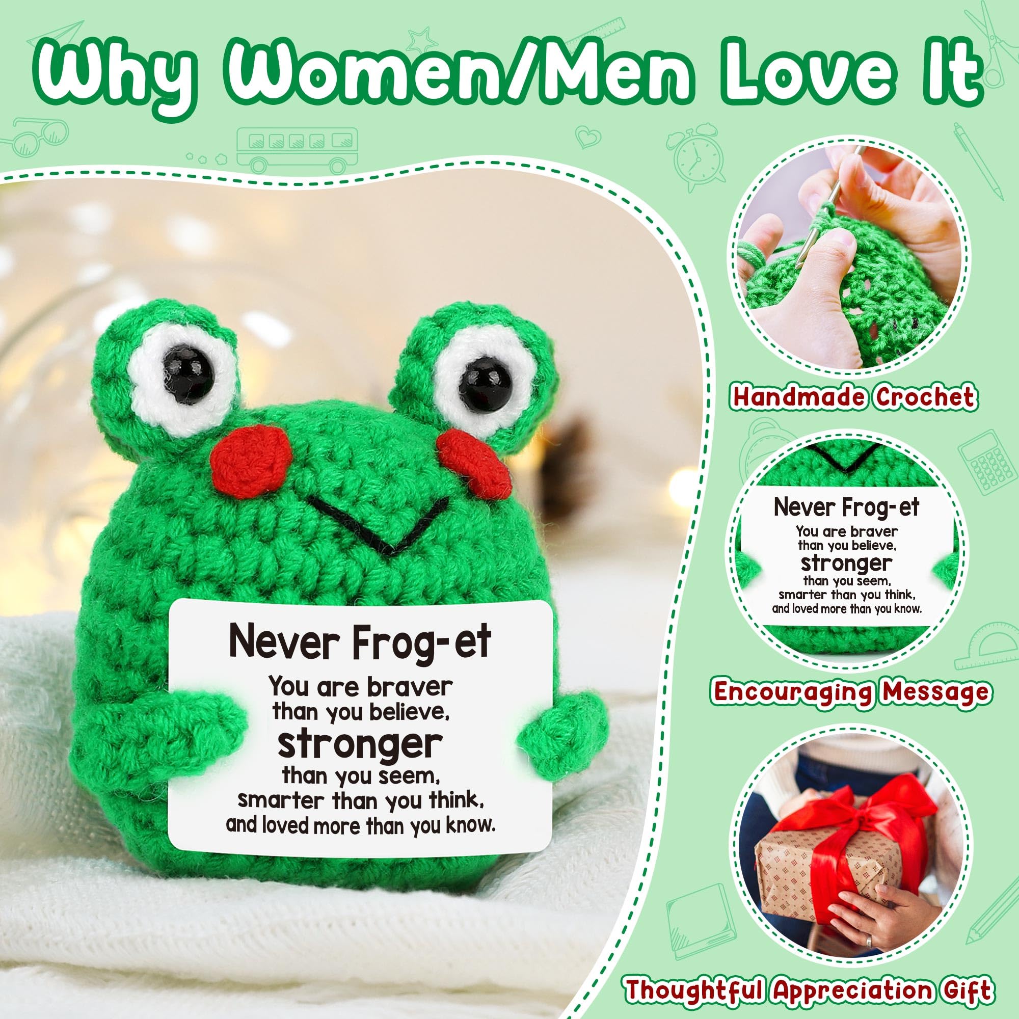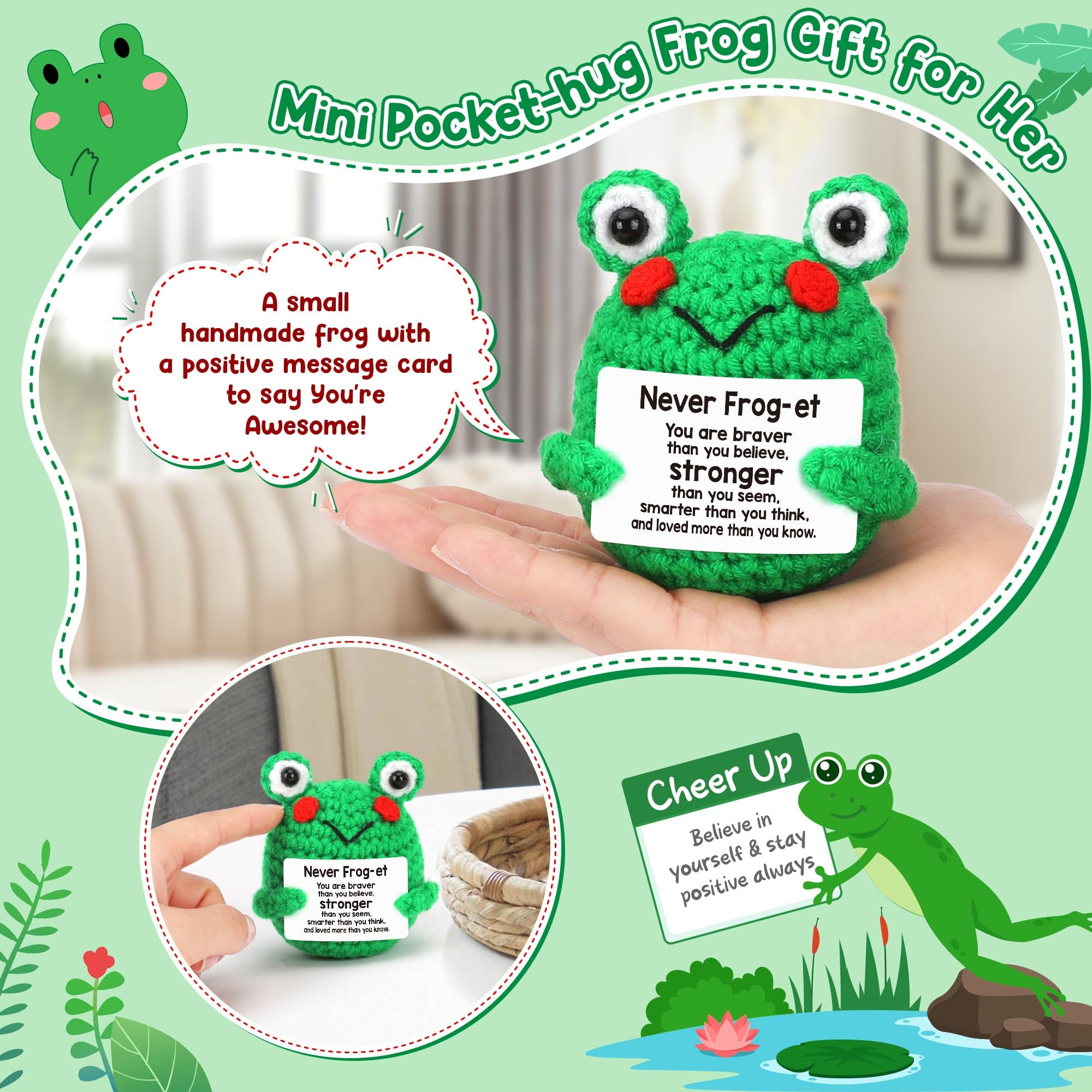 Awesome Handicrafts: Each frog is crocheted handwoven and it's an extra unique love hug gift for you or your special someone; Positive crochet mini frog, pass love and spread positive energy with this cute frog doll at any time