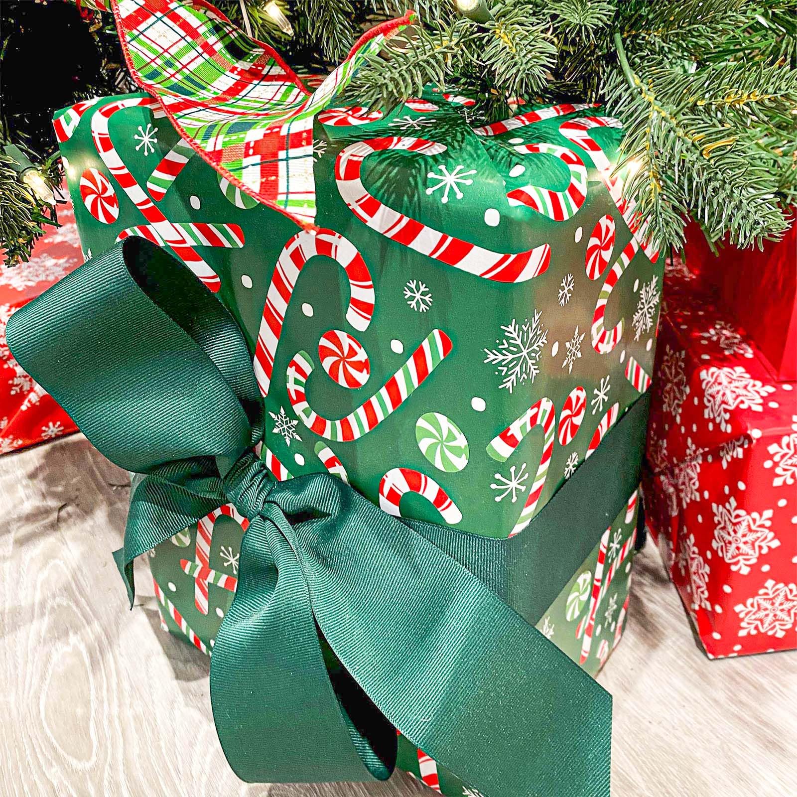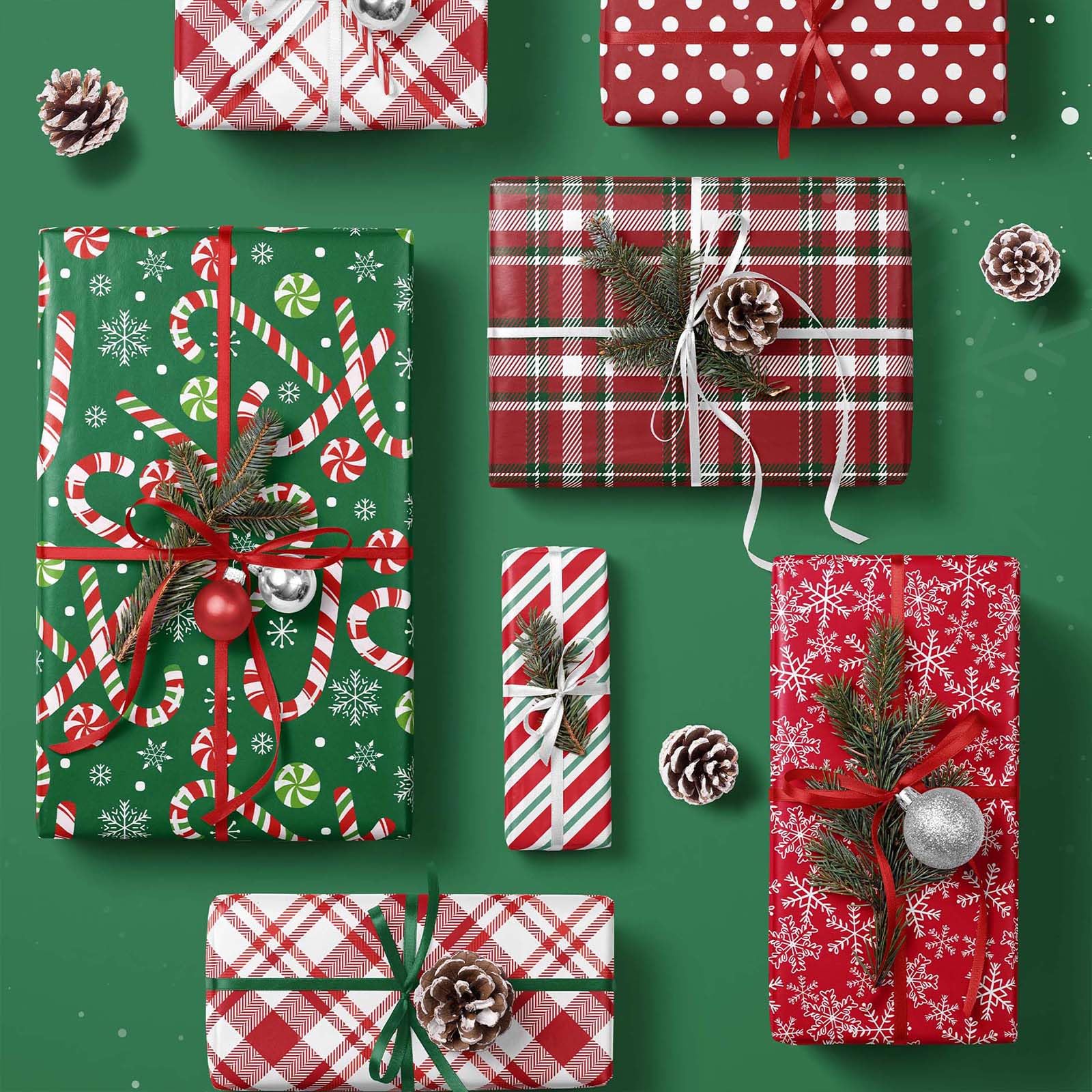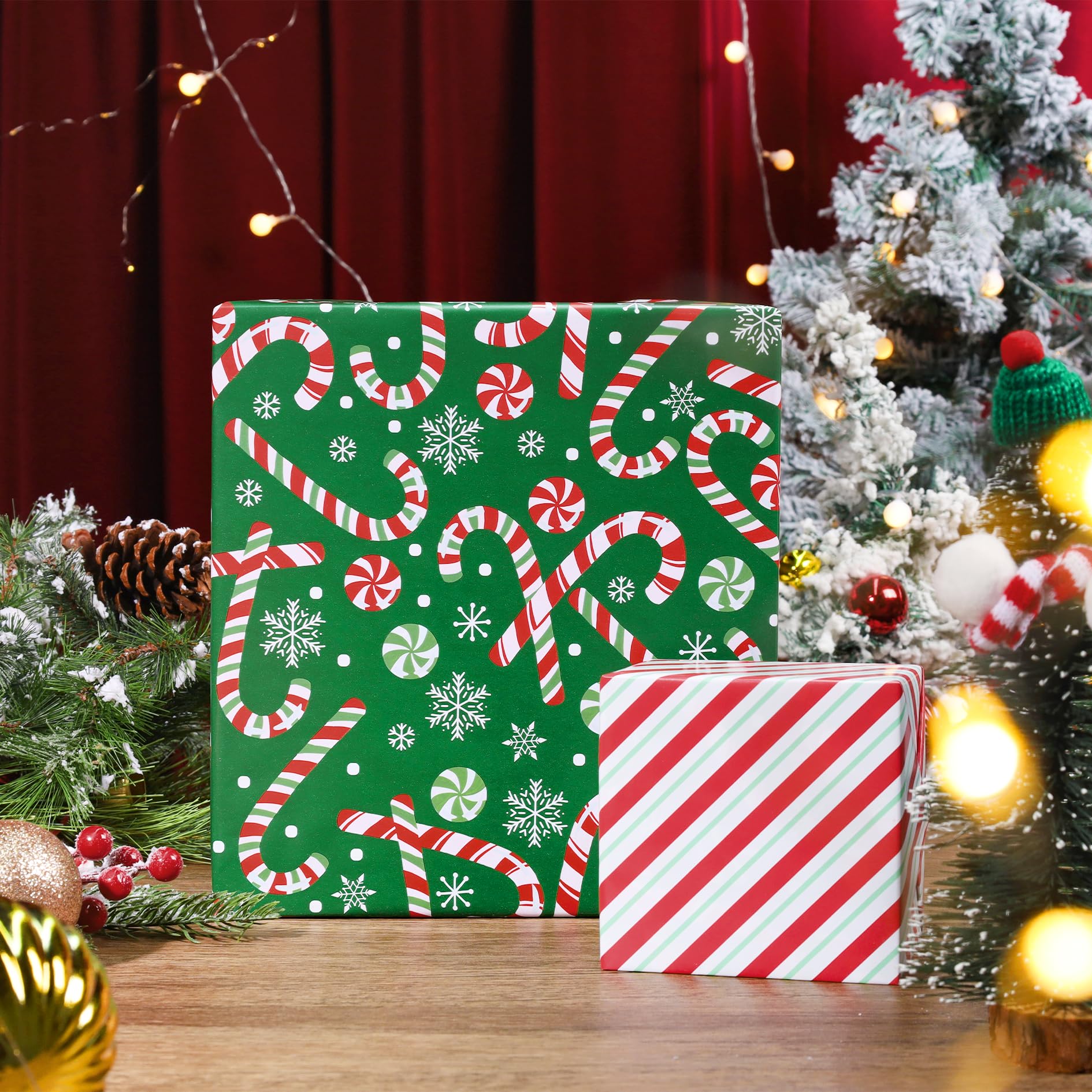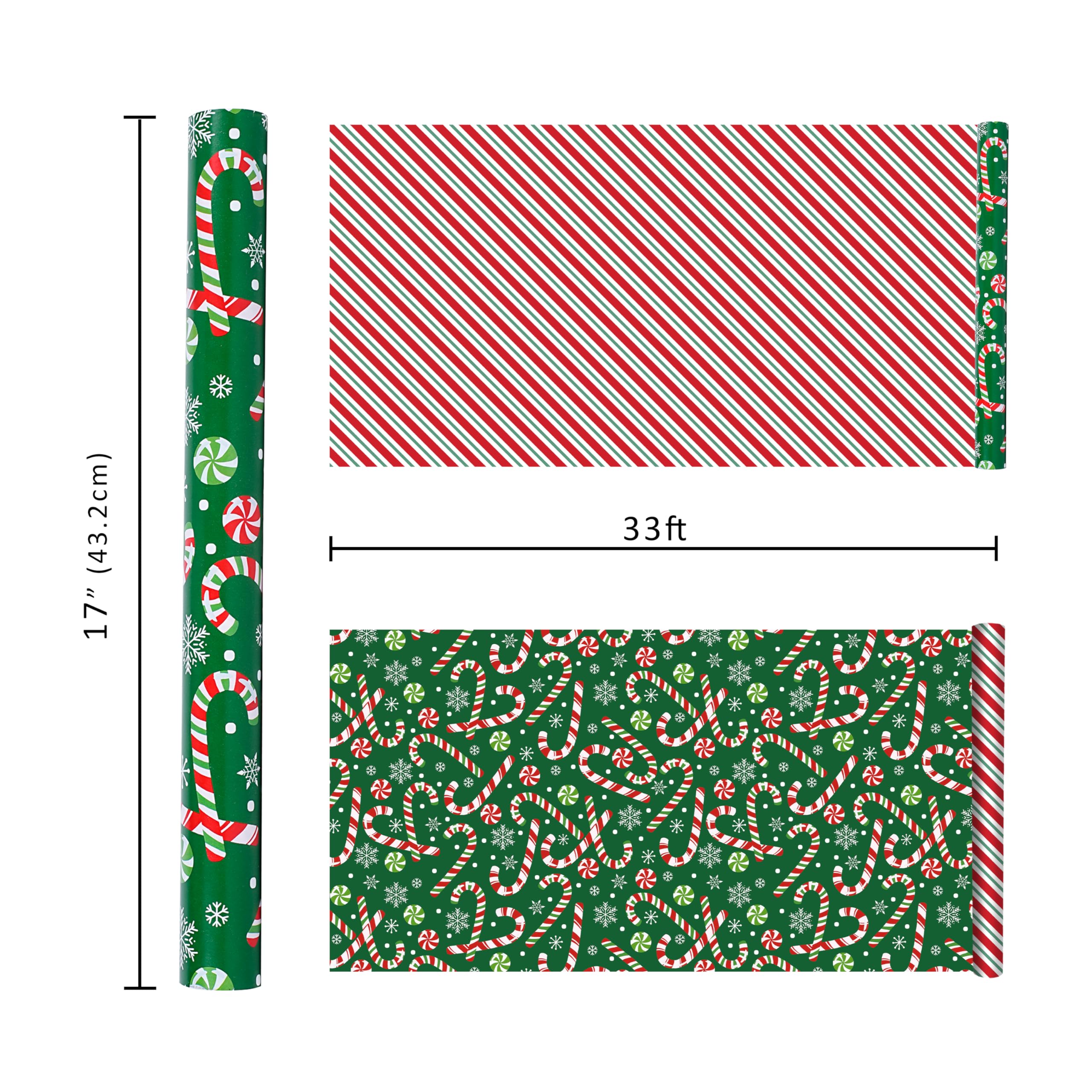 Reversible Design: This reversible wrapping paper features delightful designs like green candy cane & red green stripe, making it the perfect choice for any Christmas gift wrap