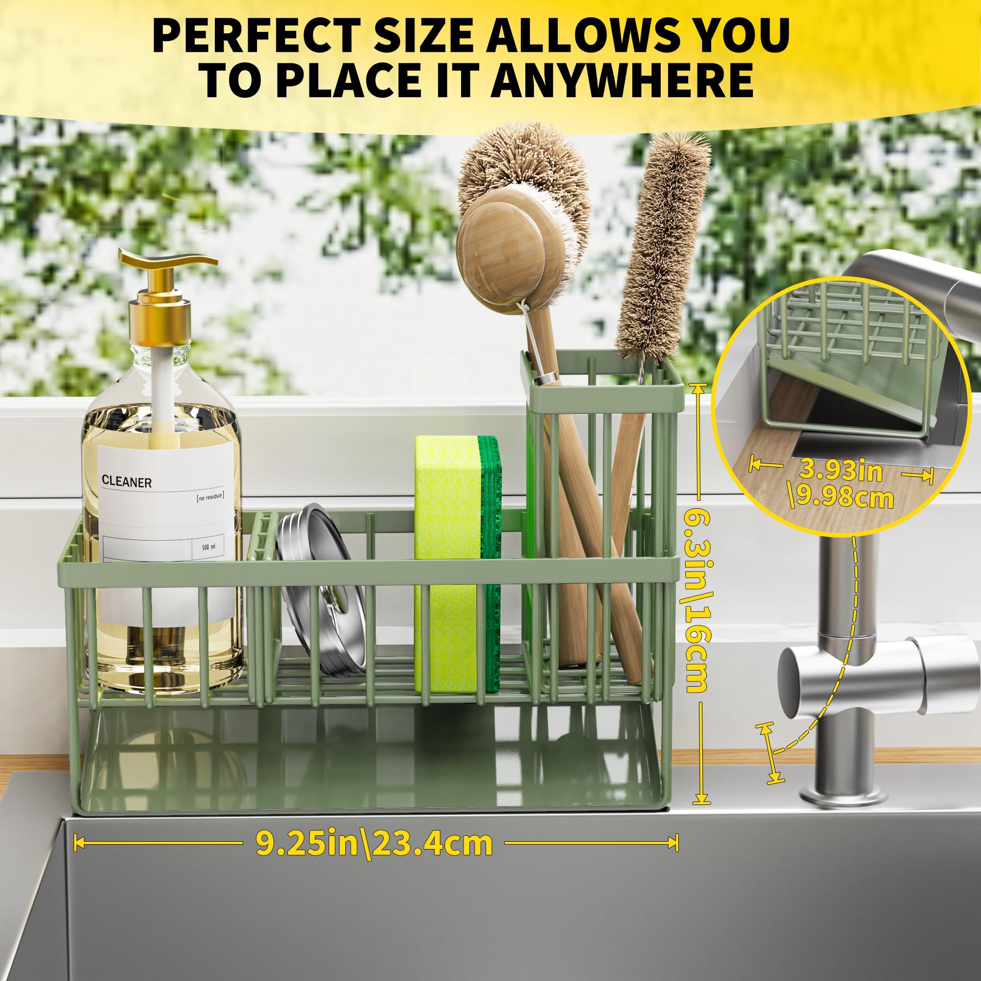 【REASONABLE DIVIDER DESIGN】 The sponge holder for kitchen sink ergonomic divider design allows it to have 3 separate storage spaces, Different items are placed in different areas. Make the most of every inch of space and make your kitchen look cleaner.