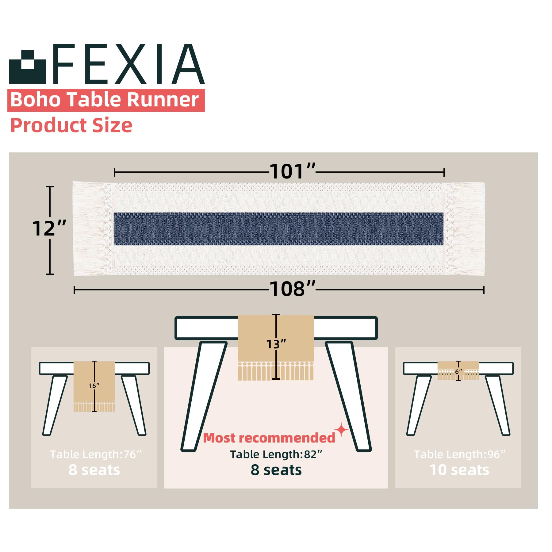[Perfect 108 Inch Long] Our boho table runner with tassels measures 12 x 108inch, fits a dining table that seats 8-10 people. It can give your tables a rustic and boho look.