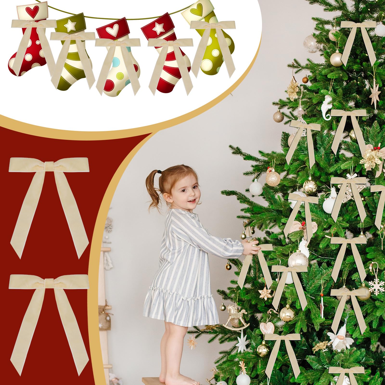 Wide applications: velvet Christmas bow is an essential accessory for Christmas decoration, you can put it on your garland, tree branches, windows, stairs, porch, fence, or other places to add festival atmosphere; In addition, it can be applied to decorate your gift boxes