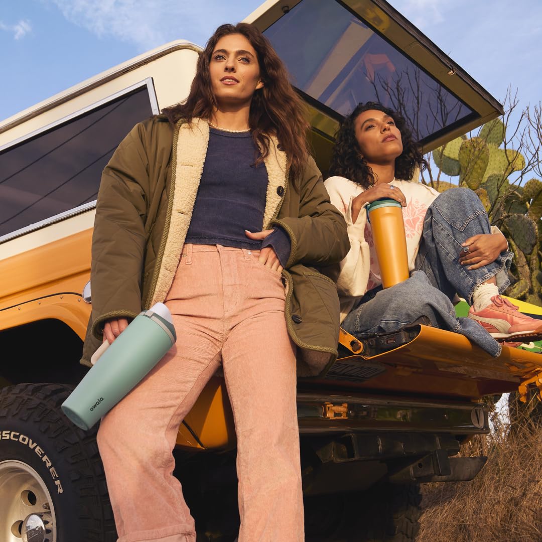 The Owala FreeSip Insulated Stainless-Steel Water Bottle with Locking Push-Button Lid easily tackles every thirst. With a built-in, easy-clean straw and a wide-mouth opening, the FreeSip reusable bottle is designed for drinking two different ways: sipping upright through the straw or tilting back to swig from the wide-mouth spout opening. Add in a push-to-open lid and playful colors, and staying hydrated has never been simpler—or more fun. Additional features include double-wall insulated stainless steel that keeps drinks cold up to 24 hours, a carry loop that doubles as a lock, a cup holder-friendly base, and a wide opening for easy cleaning and adding ice. The Owala FreeSip Insulated Stainless-Steel Water Bottle with Locking Push-Button Lid is available in three sizes: 24-Ounce, 32-Ounce, and 40-Ounce. Lid is dishwasher safe; hand wash cup. Not for use with hot liquids. Manufacturer’s limited lifetime warranty.