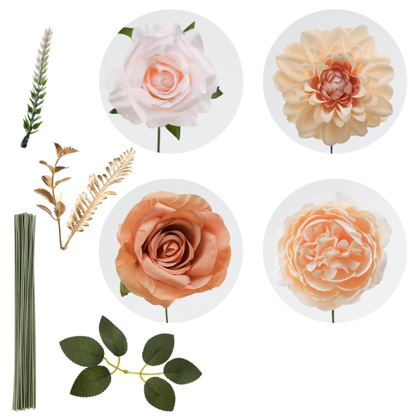 ♔ARTIFICIAL FLOWERS COMBO-A total of 17pcs flowers. Our flower set contains peonies, roses, dahlias and other accessories. It does not come with pre-arranged leaves, allowing you to customize the greenery according to your preferences. Add your favorite foliage to complete the look. All comes in a very cute box, easy giftable item.