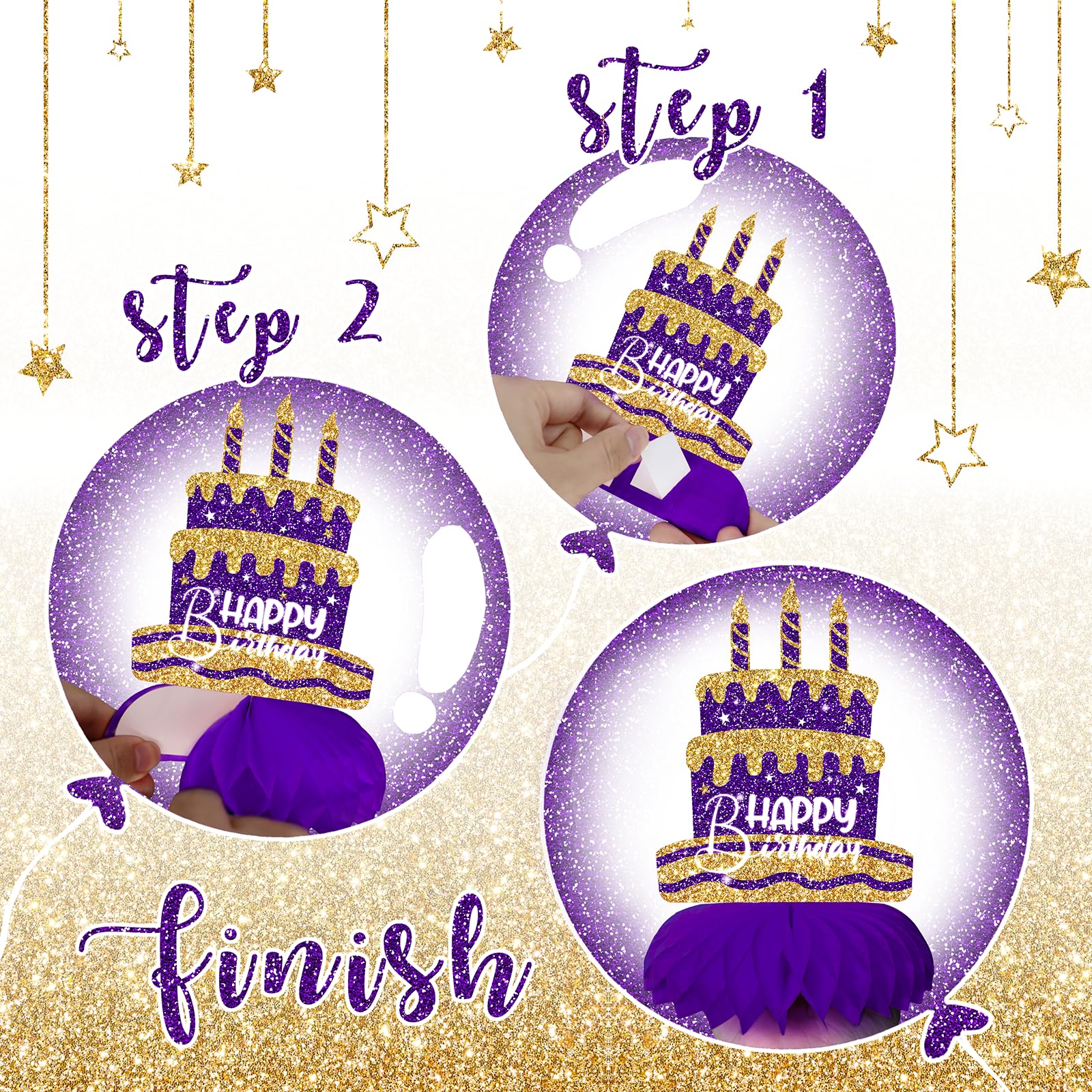 No Mess, Easy Assembly – Pre-folded and peel-to-stick design makes setup simple. Enjoy your party stress-free with these stylish purple and gold party decorations.