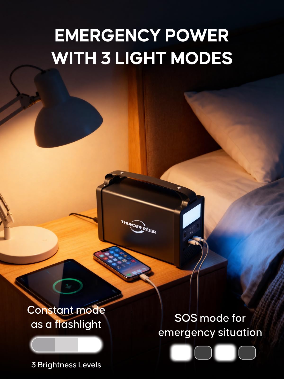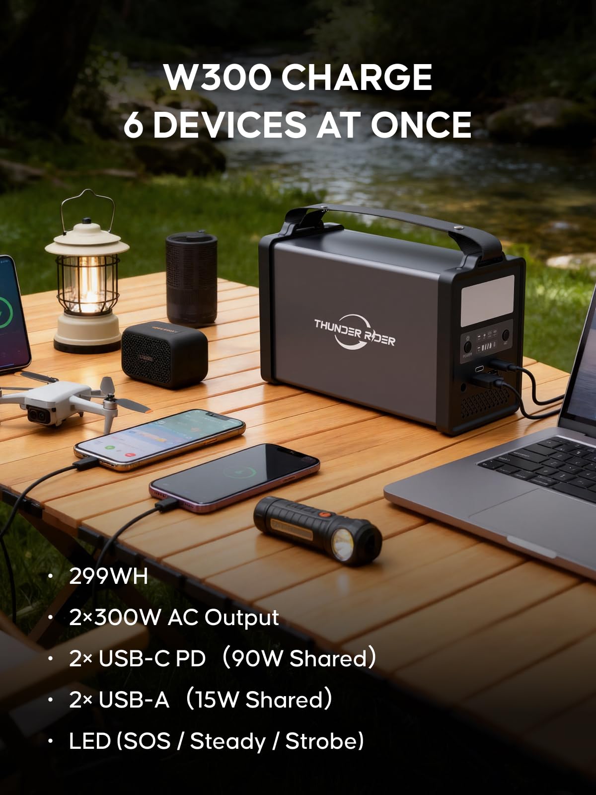 300W Continuous AC Output – Reliable 120V~60Hz power for small appliances, projectors, desk fans and other ≤300W devices