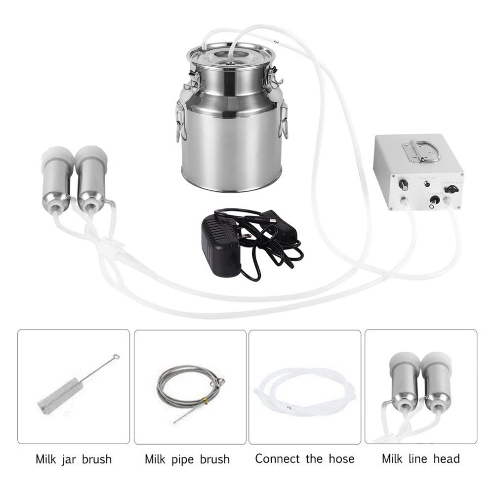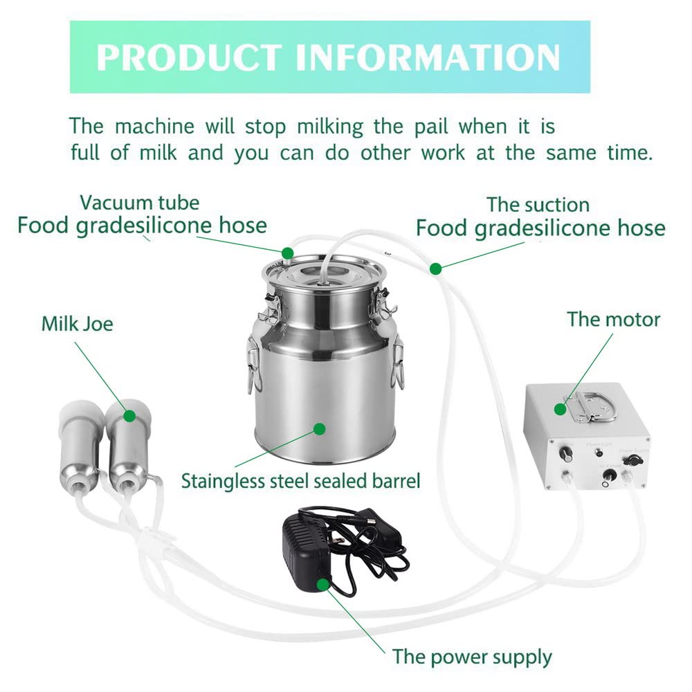 【Folding Handle for Moving Around】The milk bucket is made of premium 304 stainless steel, easy to clean. Folding handle are on 2 sides and inside. Super convenient to carry and pour out milk. 【Easy To Set Up & Clean Up】Quick installation, plugged in to use, easy to clean with 2 brushes, suitable for people with the least technical experience, can be used in farm, family, etc.
