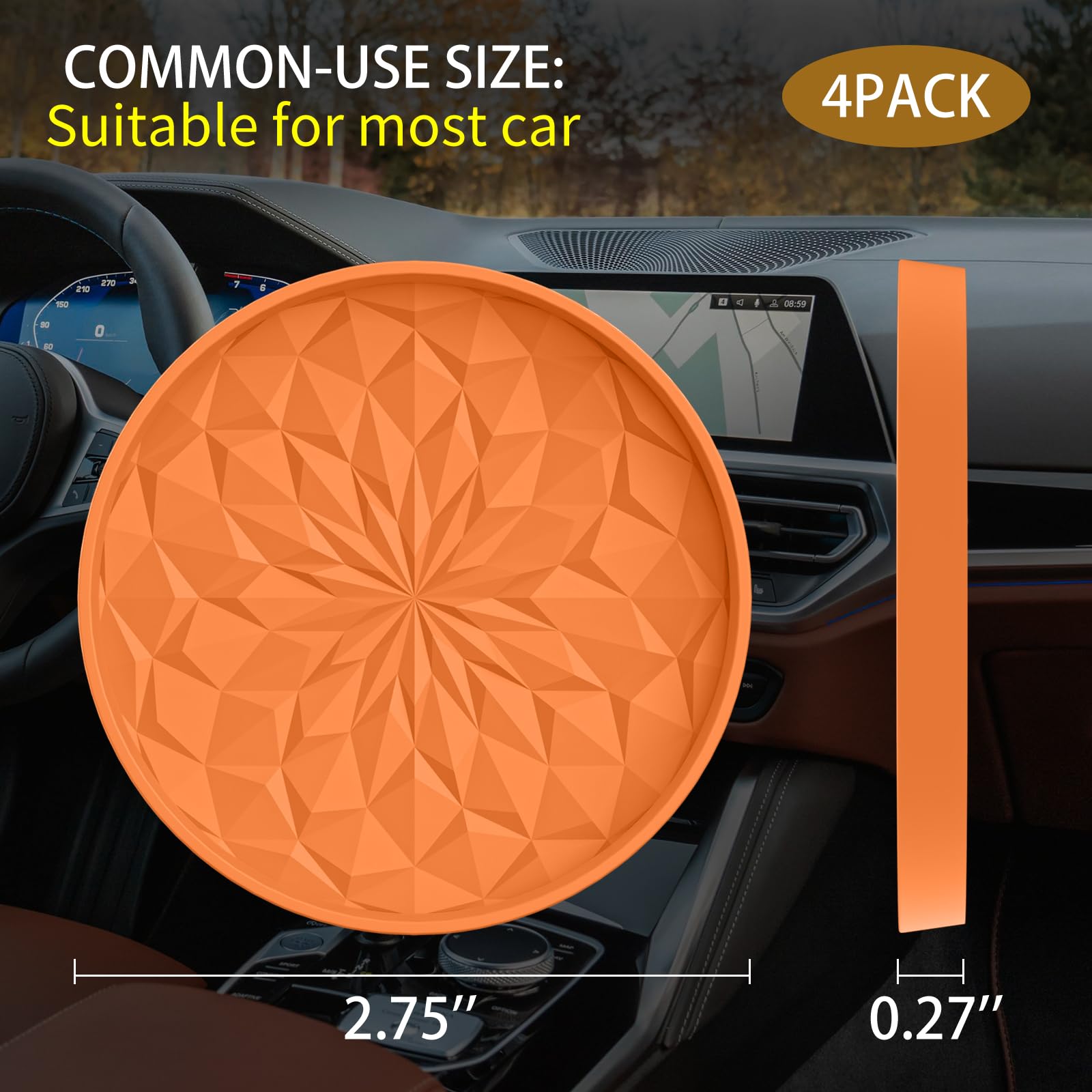 FIT MOST CAR CUP HOLDER SIZE: The thickening car cup coaster's thickness is 0.27'', the deep hem design can hold more overflow of water, juice and liquor from the cup. Diameter: 2.75'', which is suitable for most car cup holder applications. [ Please measure your car's cup slot size before purchasing, to avoid the size error to bring you trouble. ]