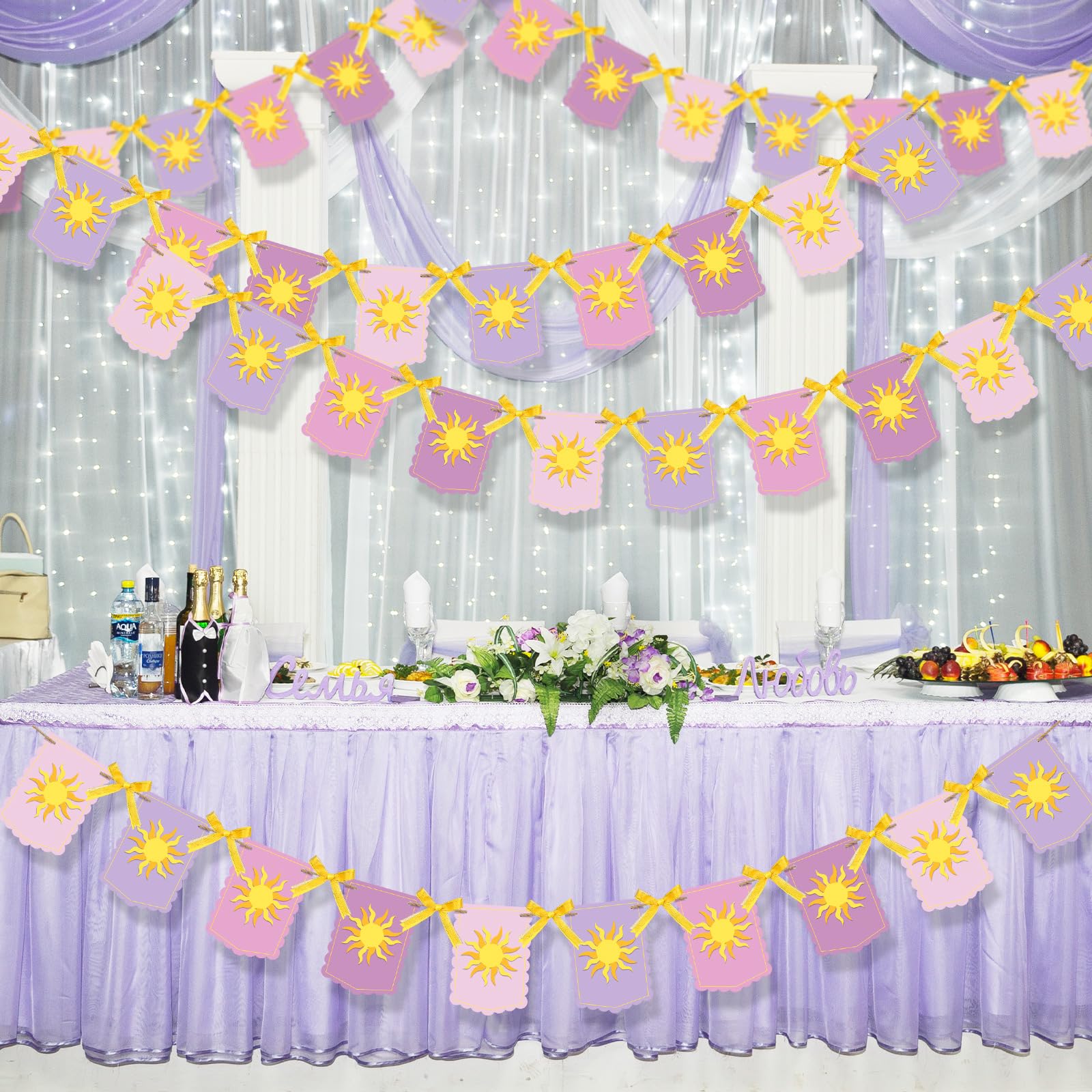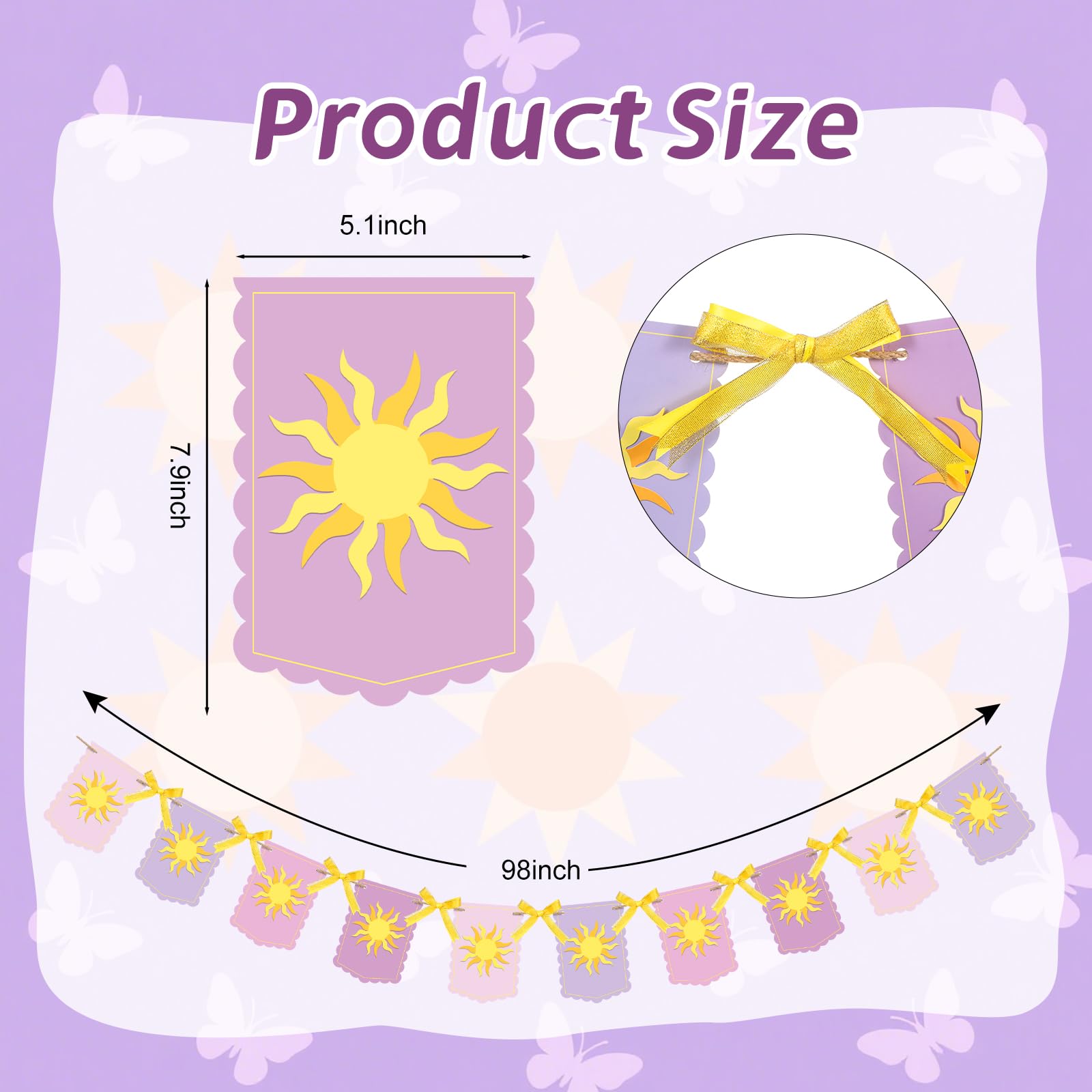 Features: Easy to Use: The party flag banners are very easy to hang and decorate both indoors and outdoors, turning your house or the party venue into the suitable celebratory space pre-assembled: Our sun banners are already strung, you don't need to assemble them, you just need to easily hang them wherever you want to decorate, saving you a lot of time and effort. Material: cardboard, hemp rope and ribbon Color: Purple Length: 98.4 inches/ 8.2 feet Package includes: 1 x Sun flag banner Notes: Manual measurement, please allow slight errors on size. The color may exist a slight difference due to different screen displays