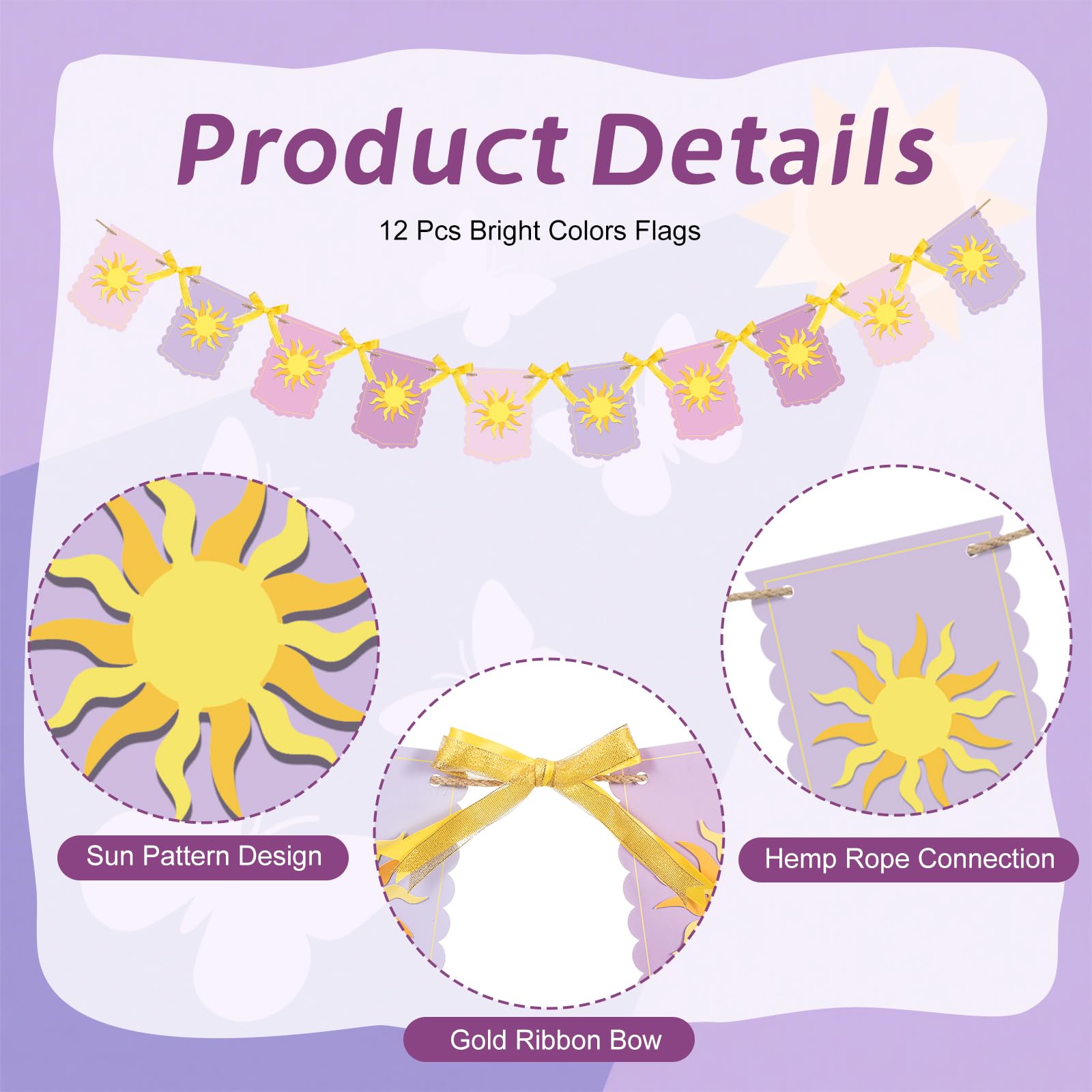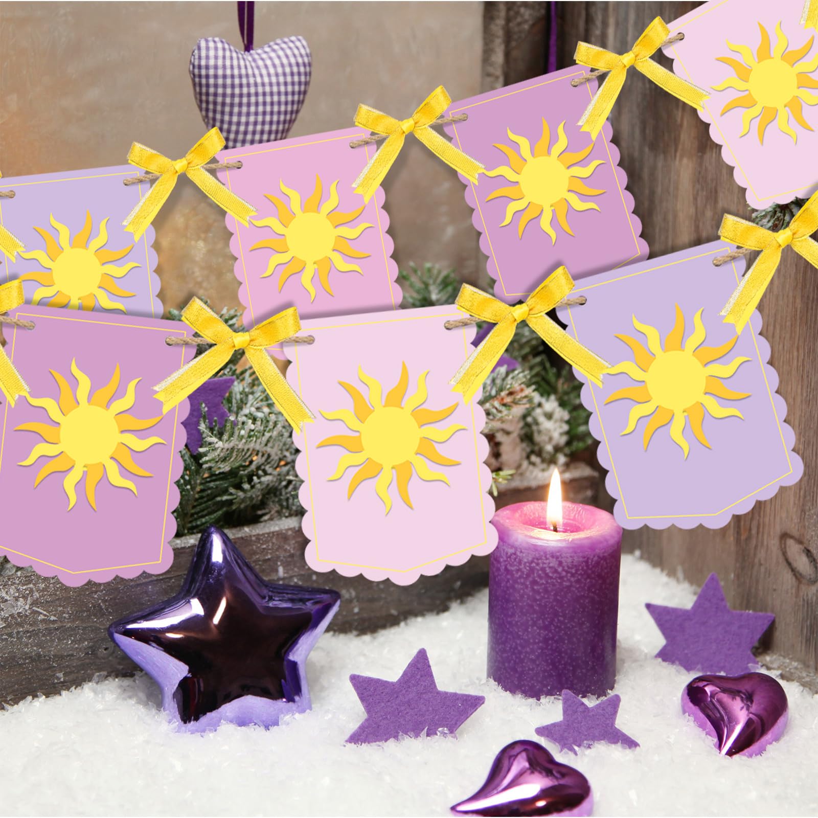 Classic Design: the purple sun banners are featured by sun pattern design that stained by glue and with two different gold ribbon bows to meet various party needs; Also, it boasts vibrant colors and a shimmering effect; For those who like this topic, this is an ideal choice as gifts