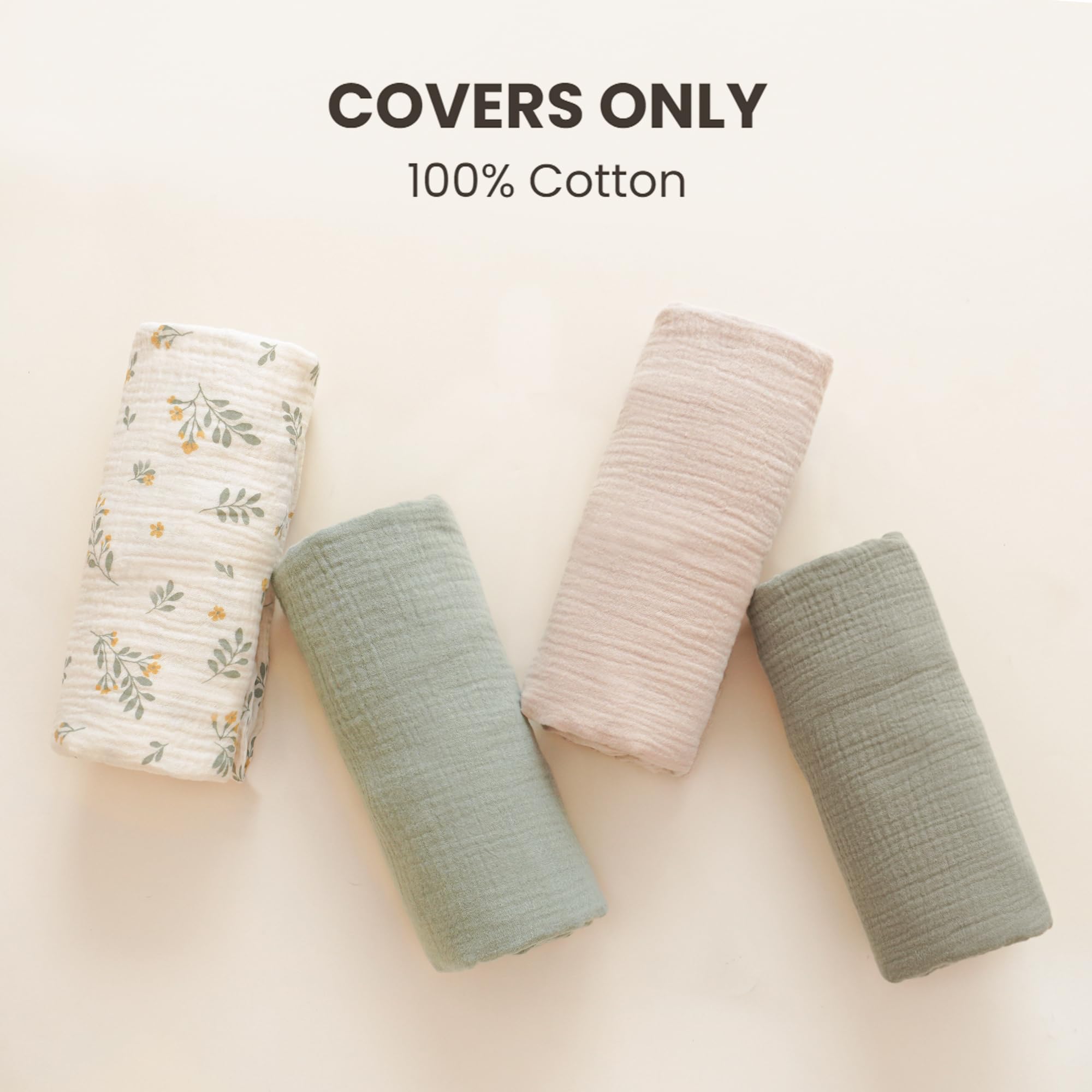 100% Muslin Cotton: Made from premium muslin cotton, these baby lounger covers offer maximum breathability and a skin-friendly, soft touch. They retain their color even after multiple washes, ensuring long-lasting comfort for your baby