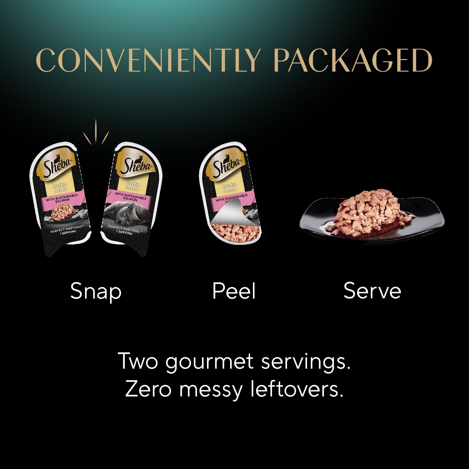 A Fresh Meal With Every Peel: These easy-to-serve twin packs of Sheba cuts in gravy wet cat food ensure two gourmet servings with zero messy leftovers at every meal; just snap, peel, and serve