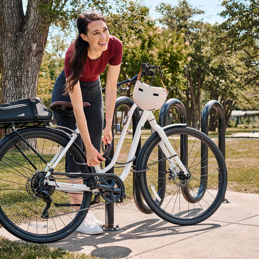 Bike lock is made with braided steel for flexibility, and includes a protective vinyl coating that helps prevent scratching