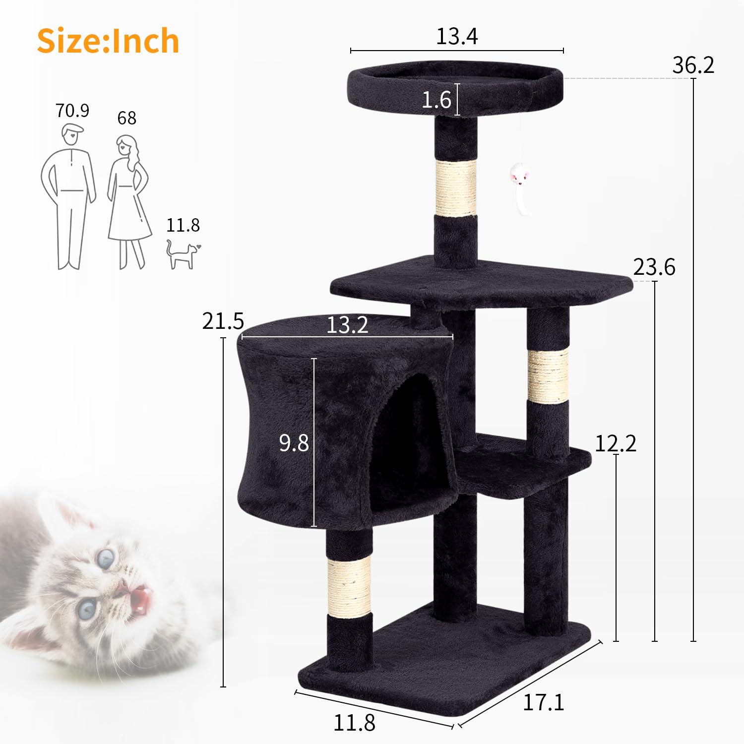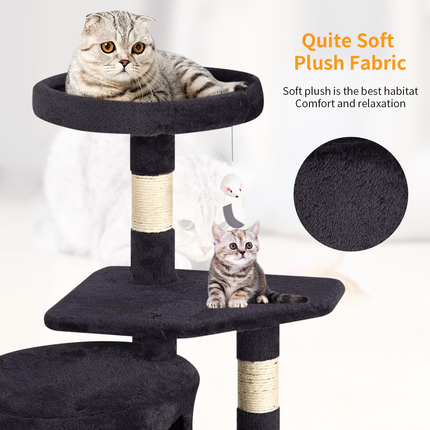 MULTI-LEVEL CAT TREE TOWER: Featuring soft a soft plush perch, sisal scratching posts, and interactive hanging cat toy, this cat tree keeps your kitty active, entertained, and happy indoors.