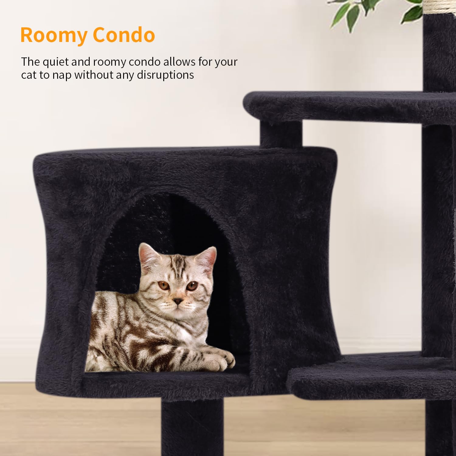 INDIVIDUAL PERCH & SPACIOUS CONDO: Features a soft, elevated perch for lounging and a spacious cat condo for napping or hiding, giving your kitty private comfort and a cozy retreat indoors.